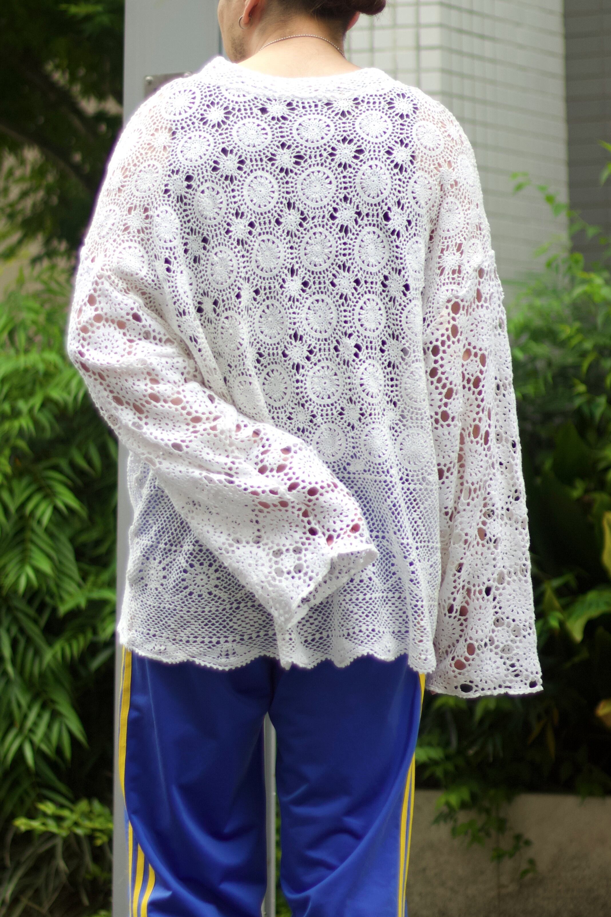 【CUBA】"Antique fabric" white lace designed summer knit sweater-8559-