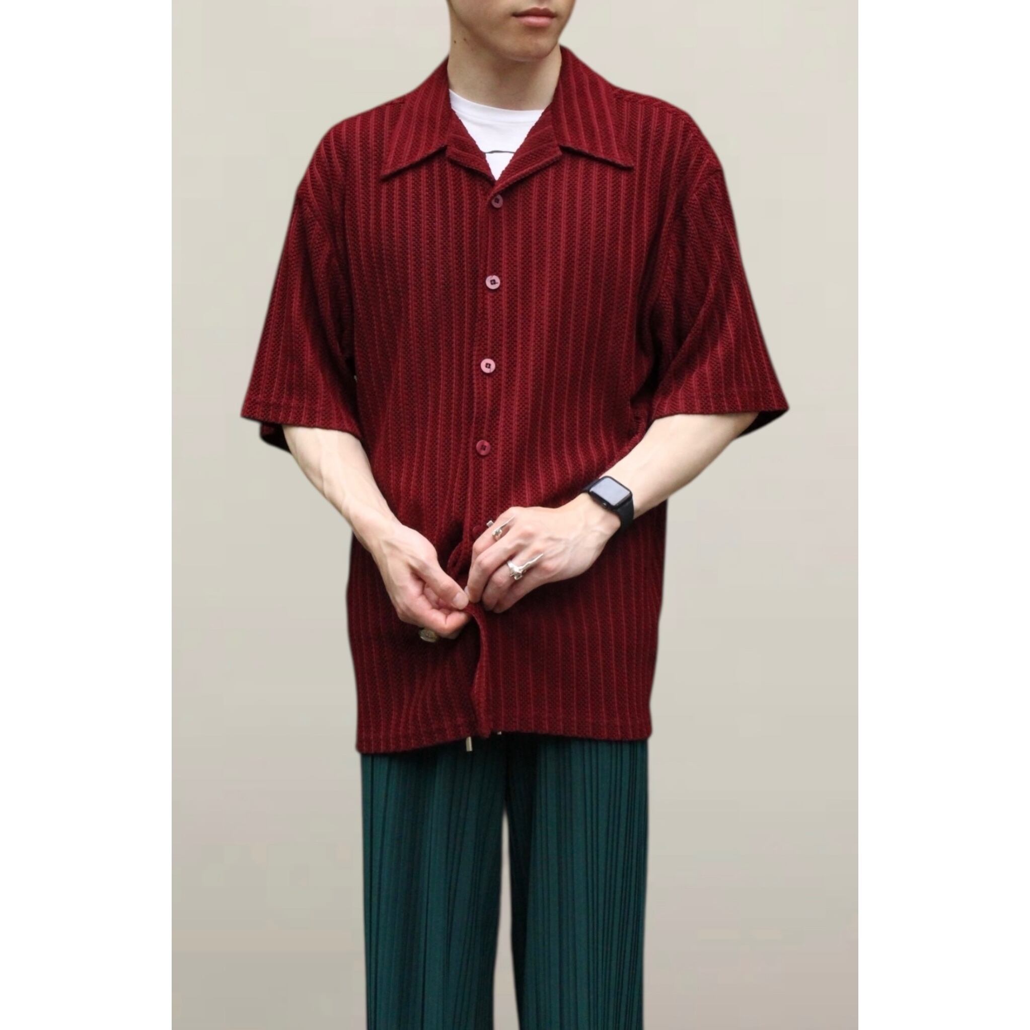 【OTSU】1980's vintage S/S mesh design open collar shirt -12895-