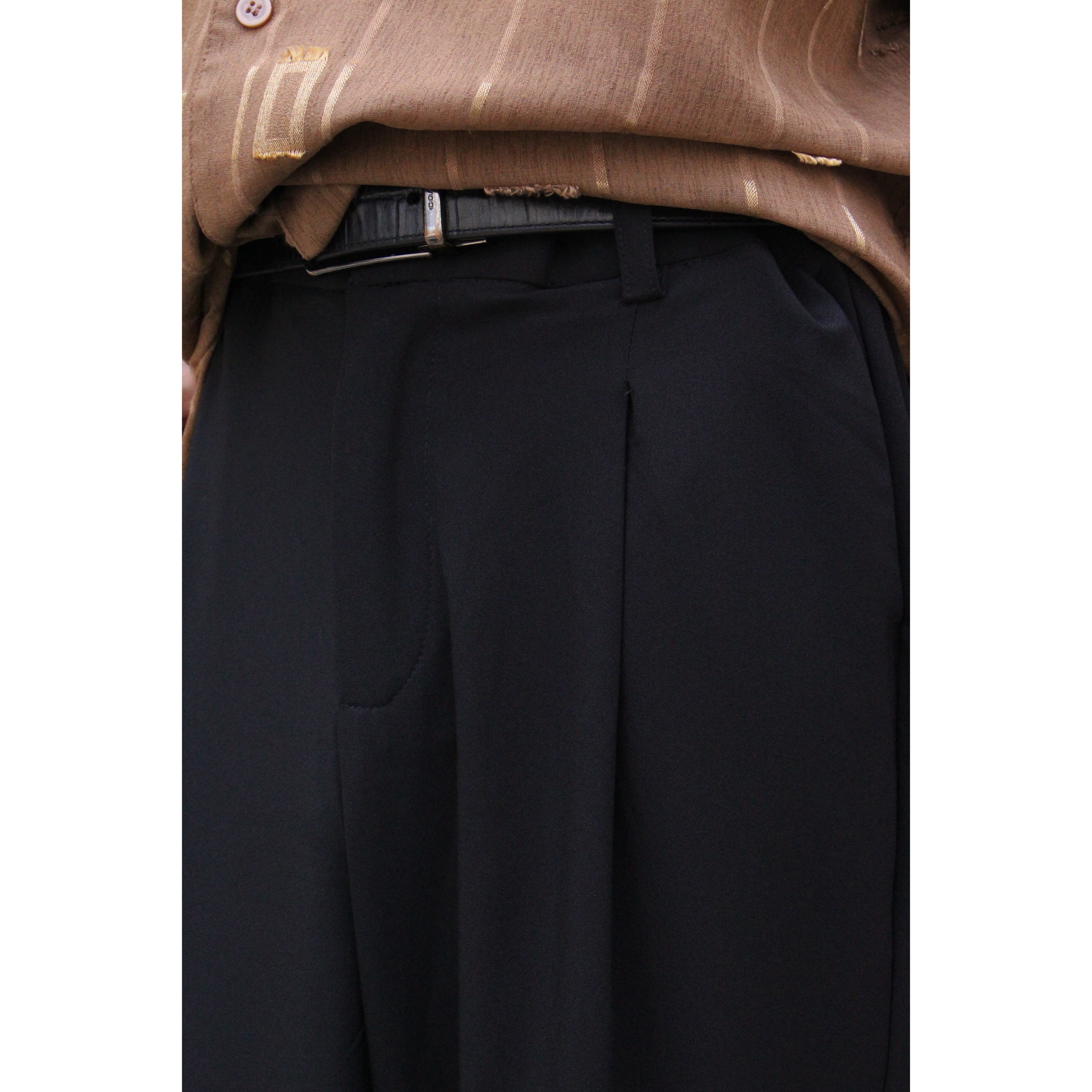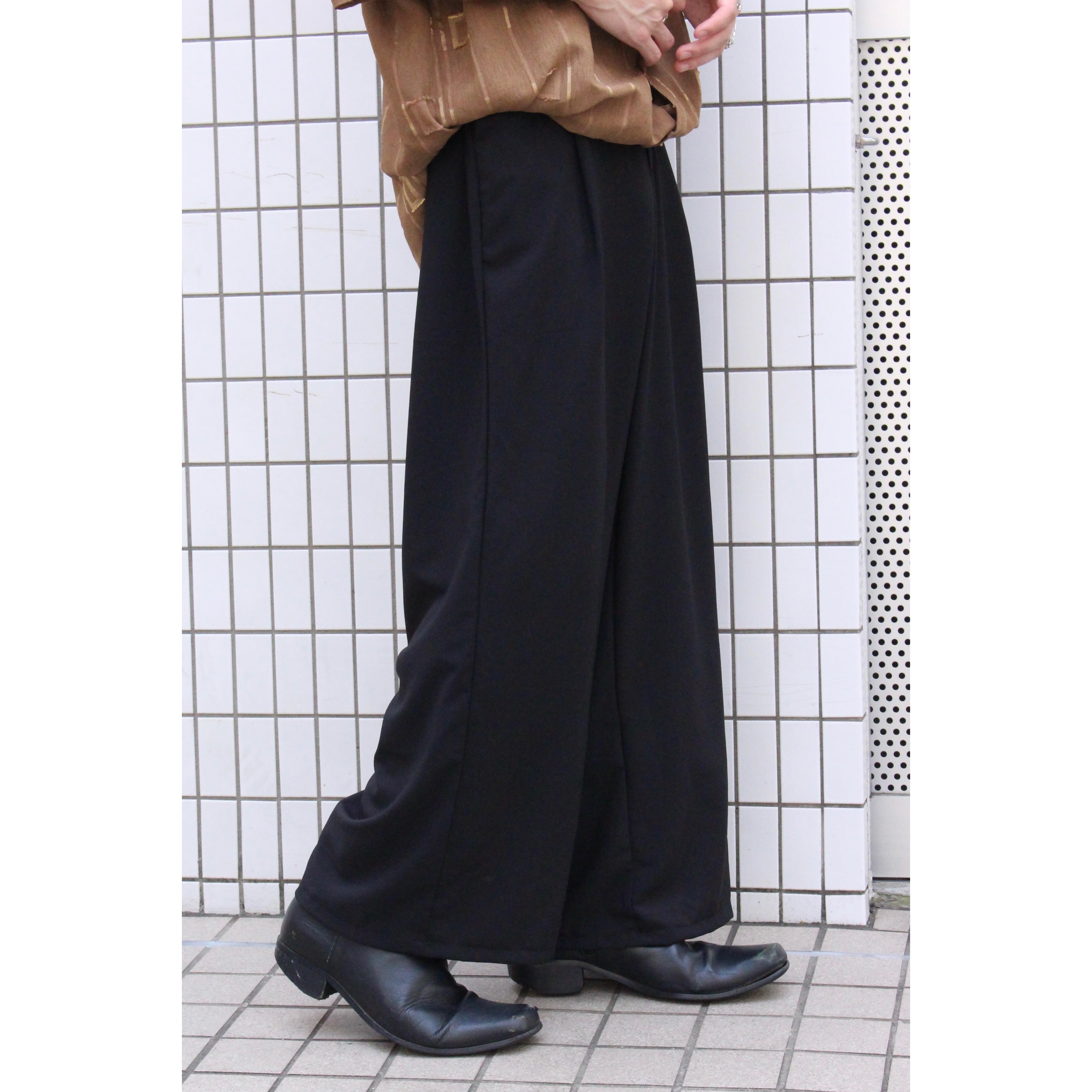 裾幅広めなバギーで袴のようなストレートが良い綺麗めシルエットパンツ。イージーパンツながらもウエストにはベルトループが付いているのでほぼウエストフリー。