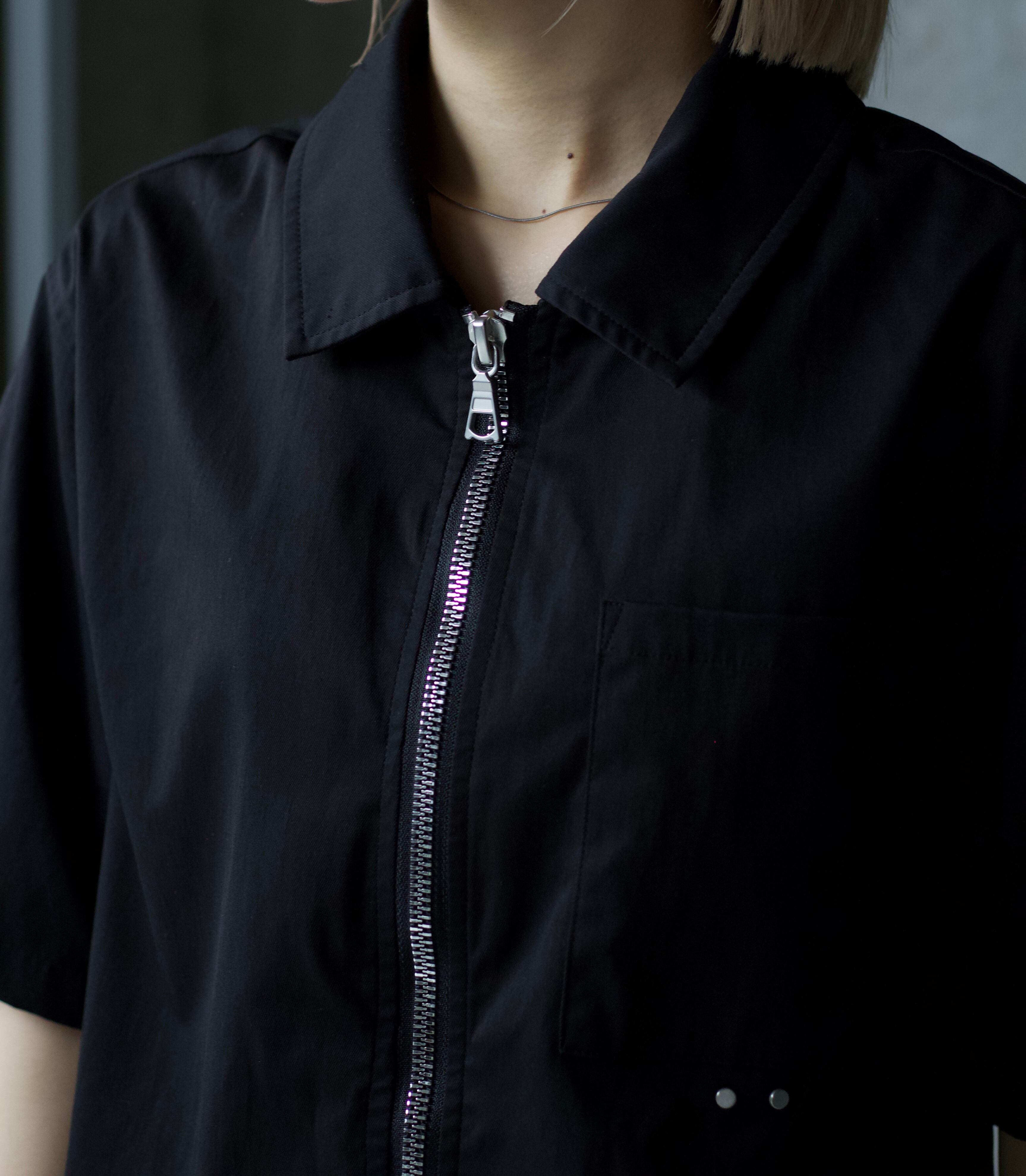 【MAKE MY DAY】Zip detail short sleeve shirt -0427-
