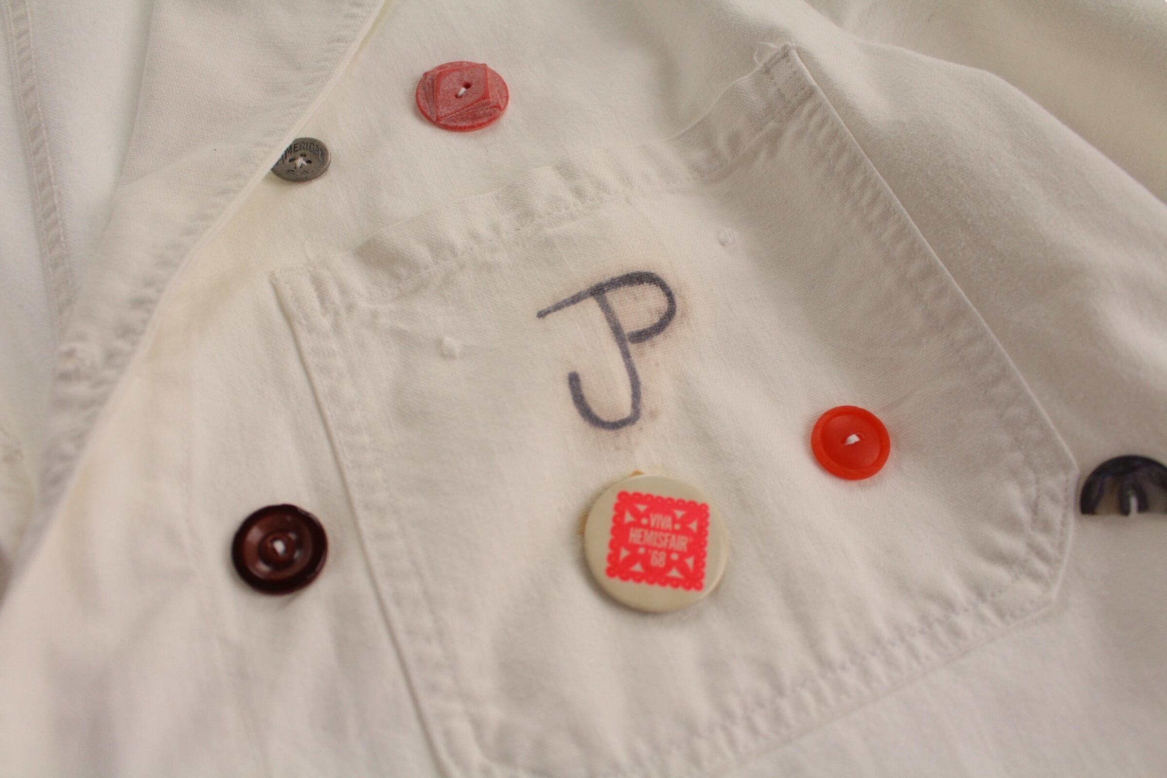 1984年以降にアメリカで生まれたであろう、しっかりとしたホワイトコットン地のワークコートは、