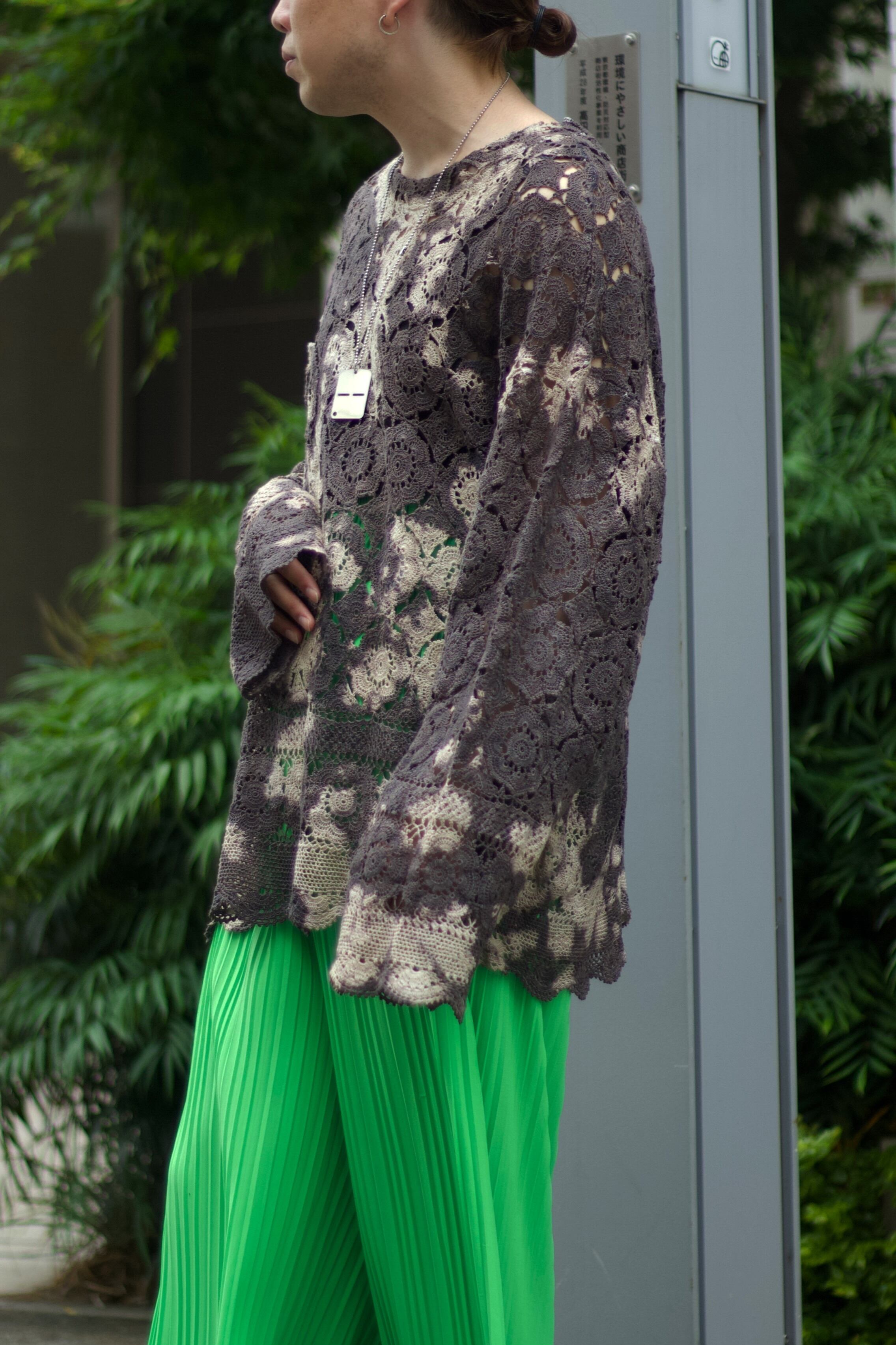 【CUBA】"Antique fabric" tie-dye lace designed summer knit sweater-8574-