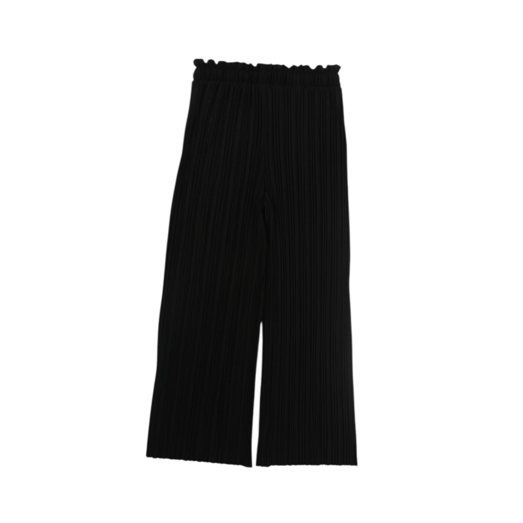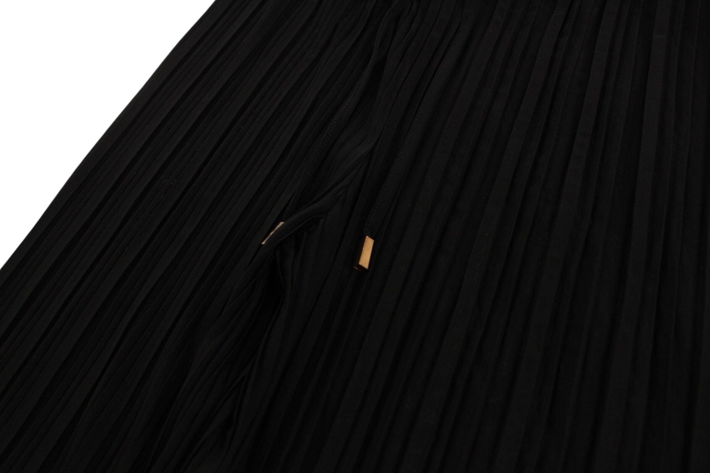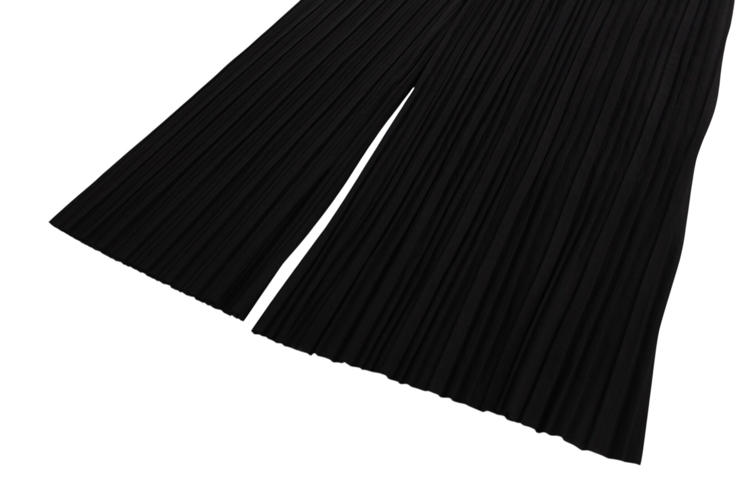全体に入った繊細なプリーツが縦のラインを強調し、ワイドシルエットながらすっきりとした印象に。