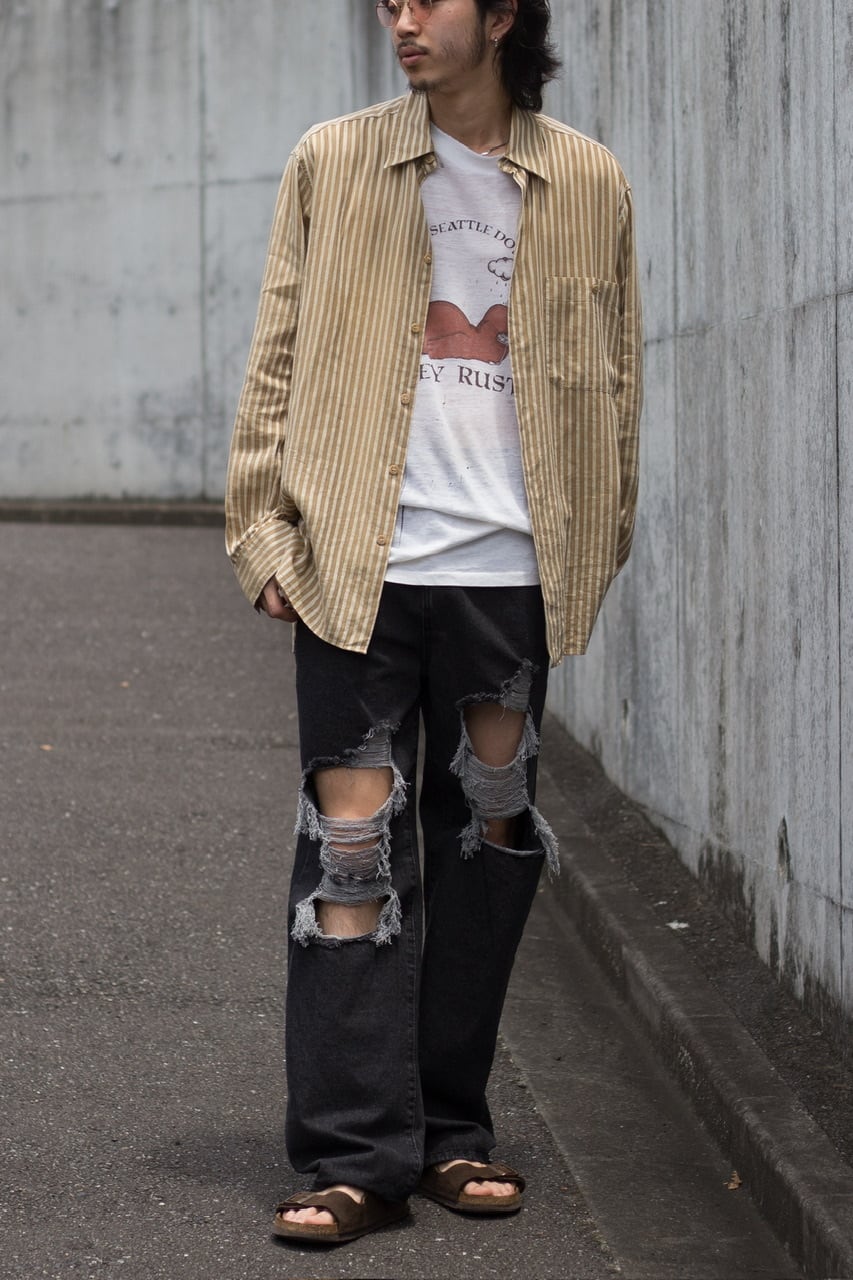【OTSU TOKYO】Damage processing black denim pants -2527-