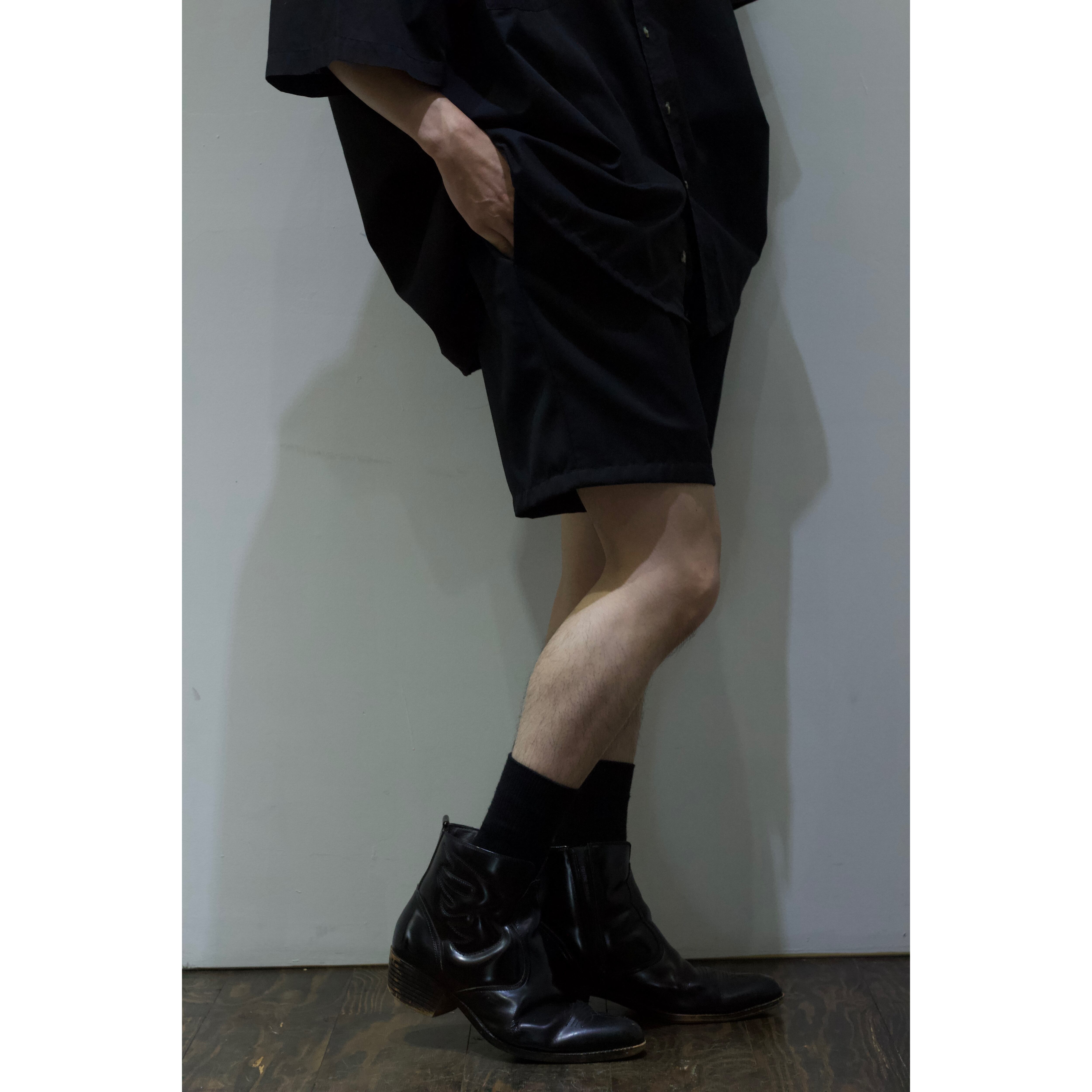 ウエストは2タックがとられ,裾までワイドなシルエット。ワイドスラックスをぶった斬ったような綺麗なシルエットでショーツ初挑戦の方にもおすすめできる逸品。