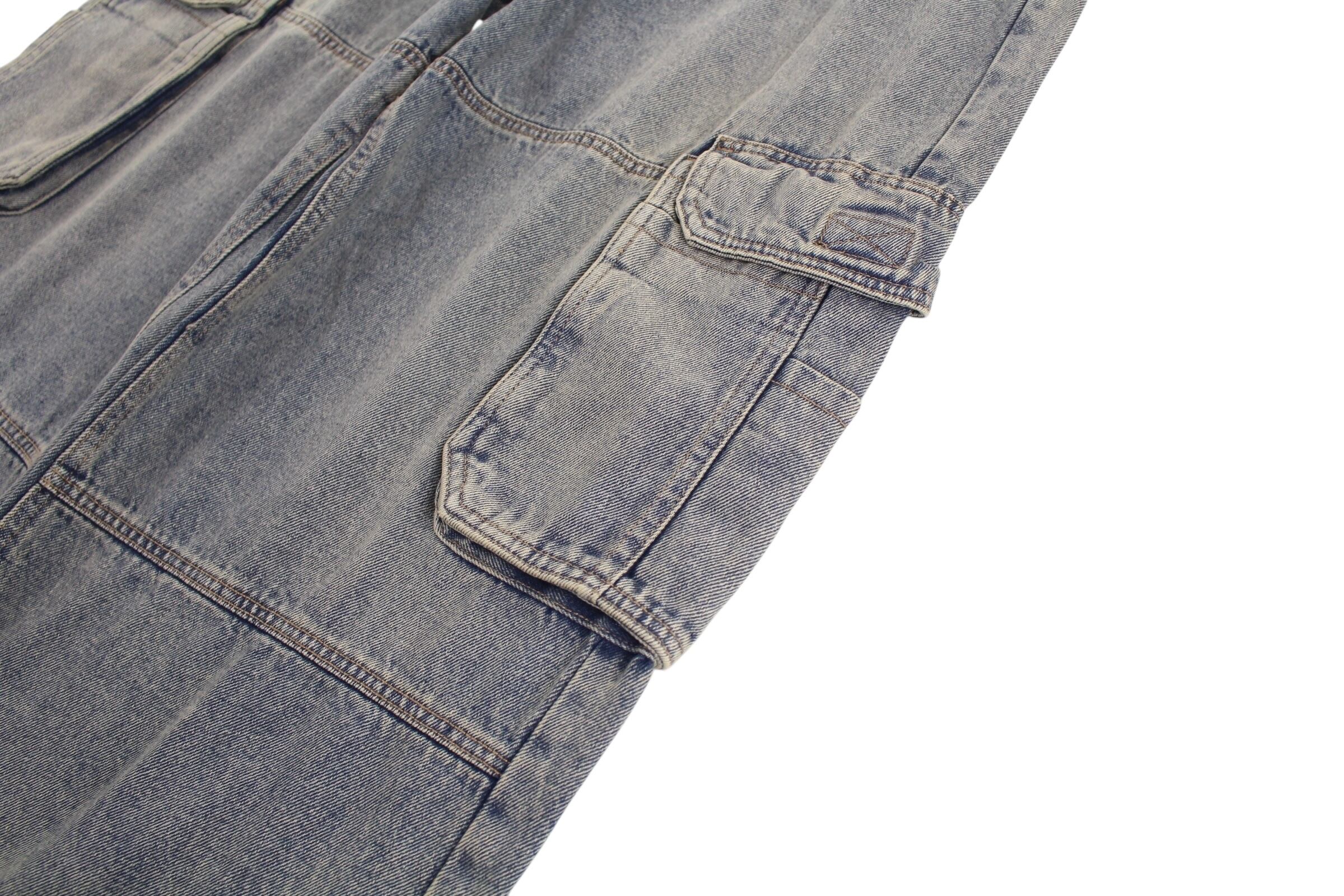 fade wide straight denim cargo pants