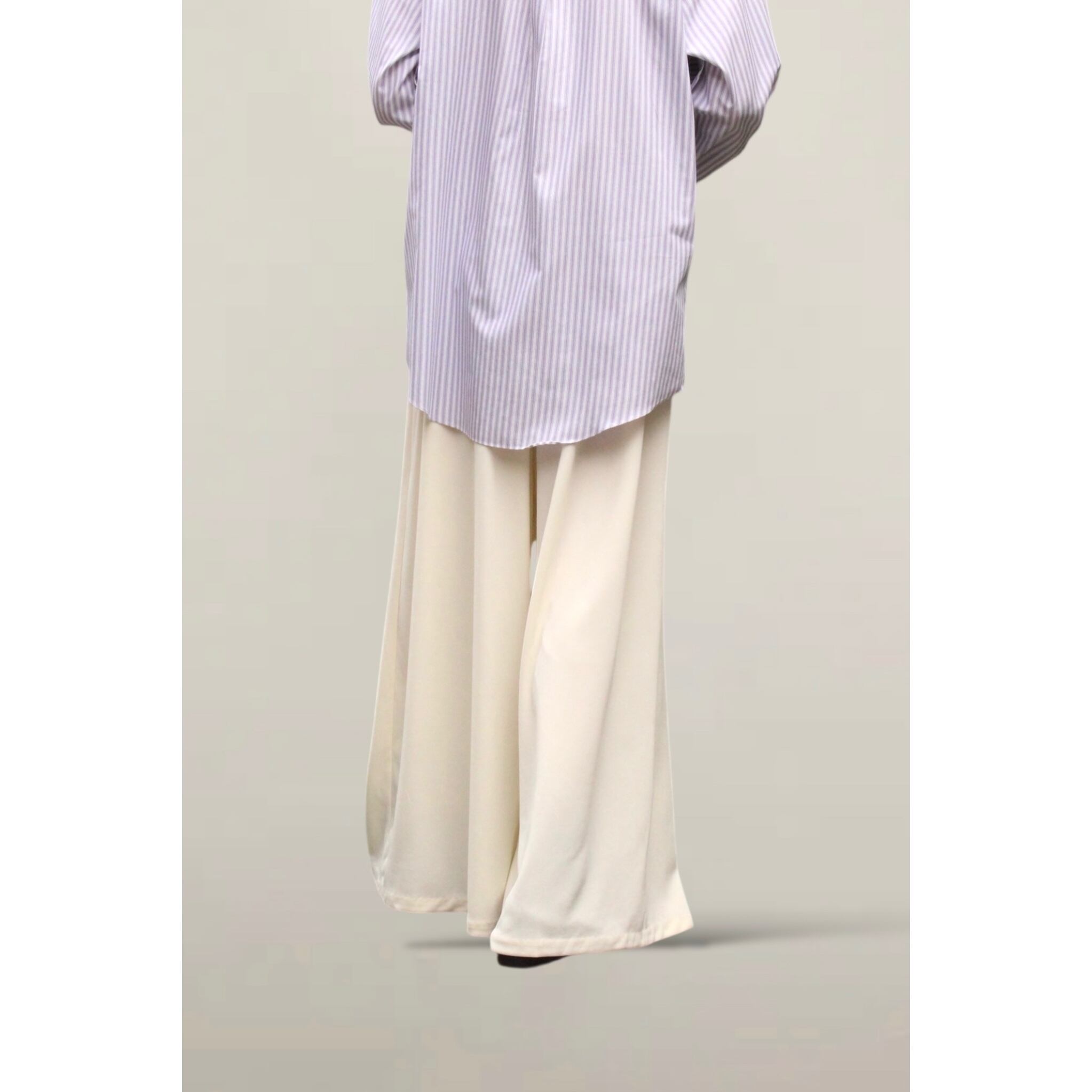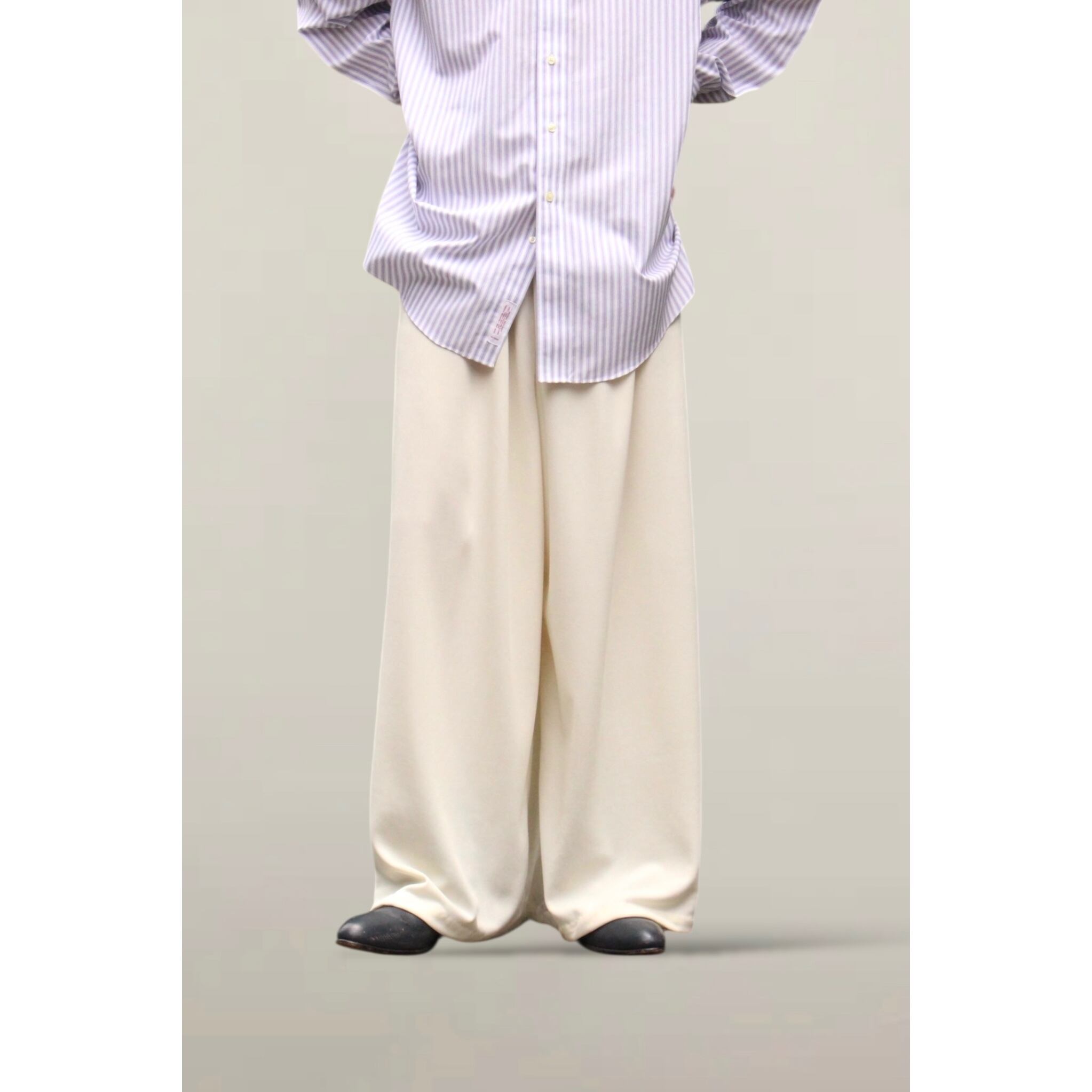 裾幅は45cmと広く履くとドレープの良い広がるシルエット。ウエストはゴムで履き心地も楽ですし中性的な印象も堪らないですね。。