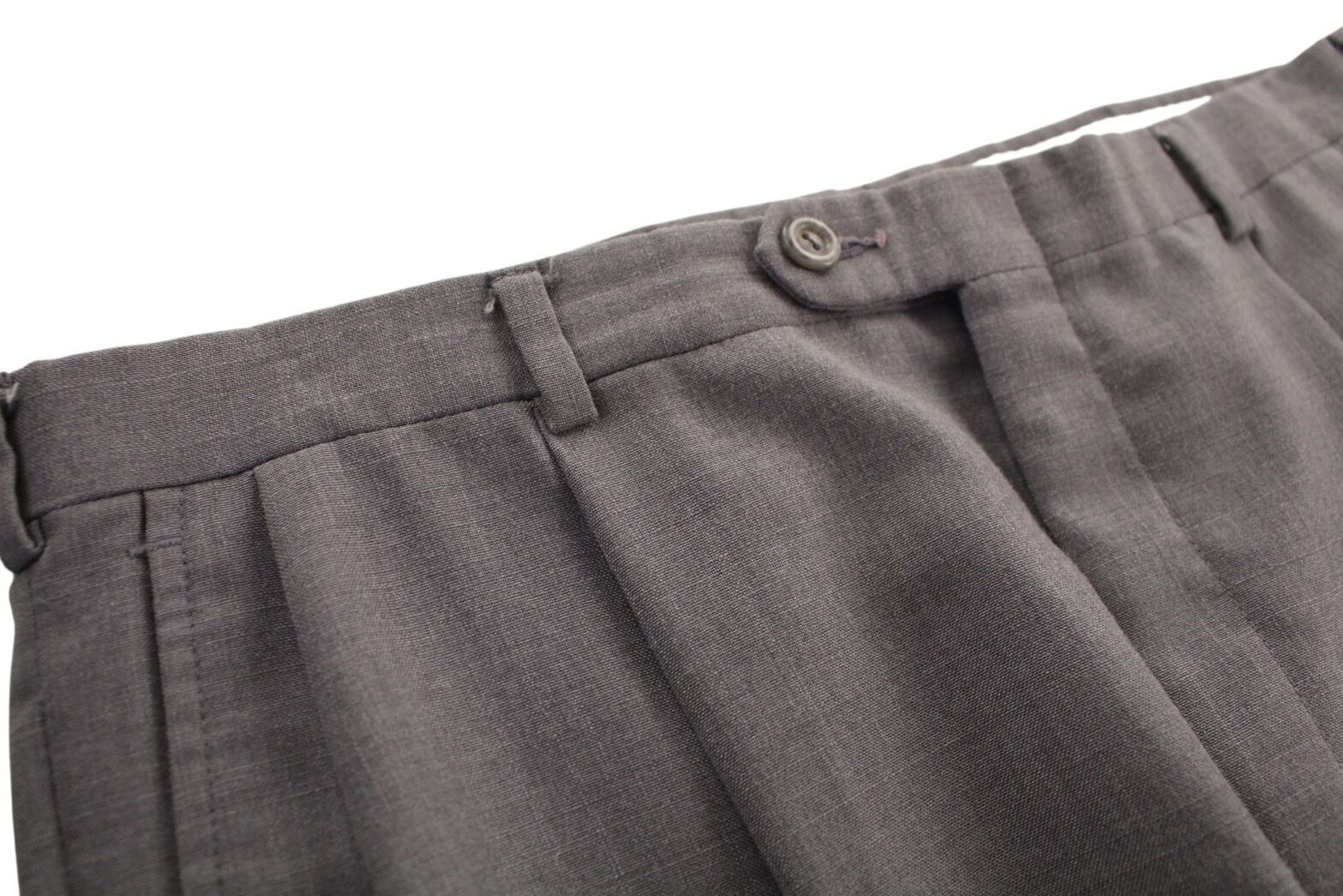 ウエストには深めの2タック入りで、腰周りはゆとりがありつつ、ほぼストレート具合のテーパードした美しいライン。