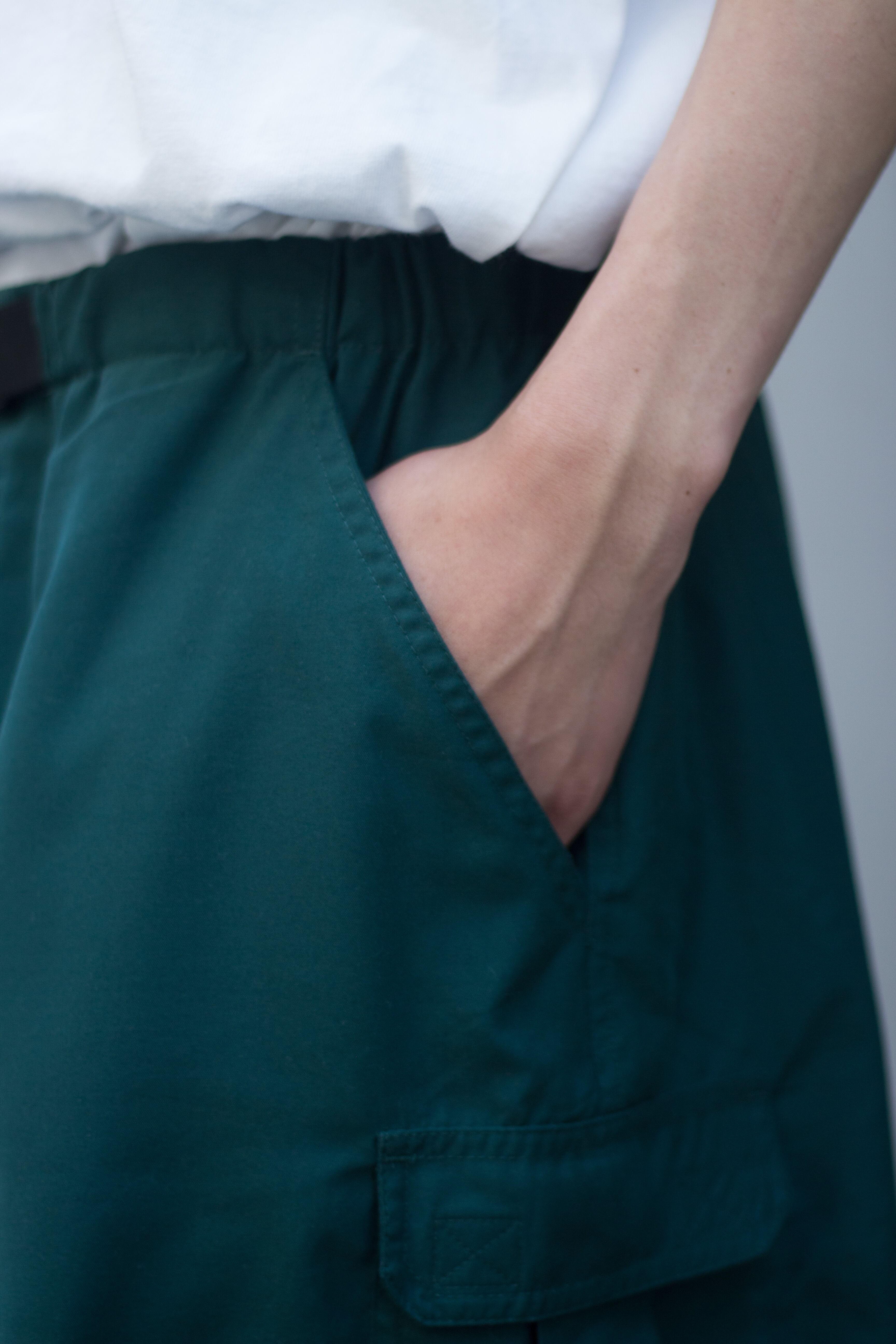 ウエストは締め付け感のないイージー仕様で、内蔵されたウェビングベルトでサイズ調整が可能。