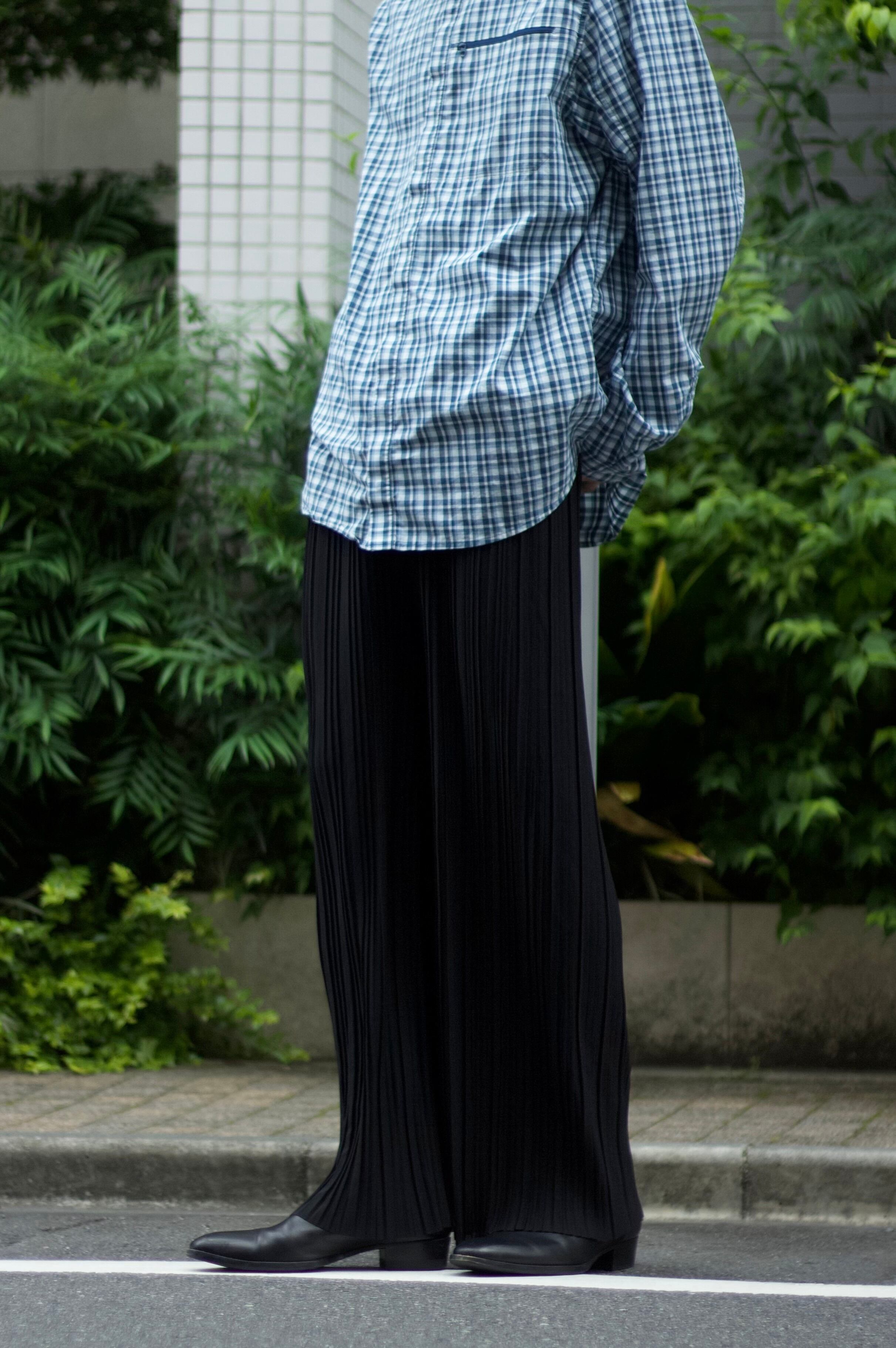 【CUBA】"Black color" pleats wide easy pants with drawcord-8604-