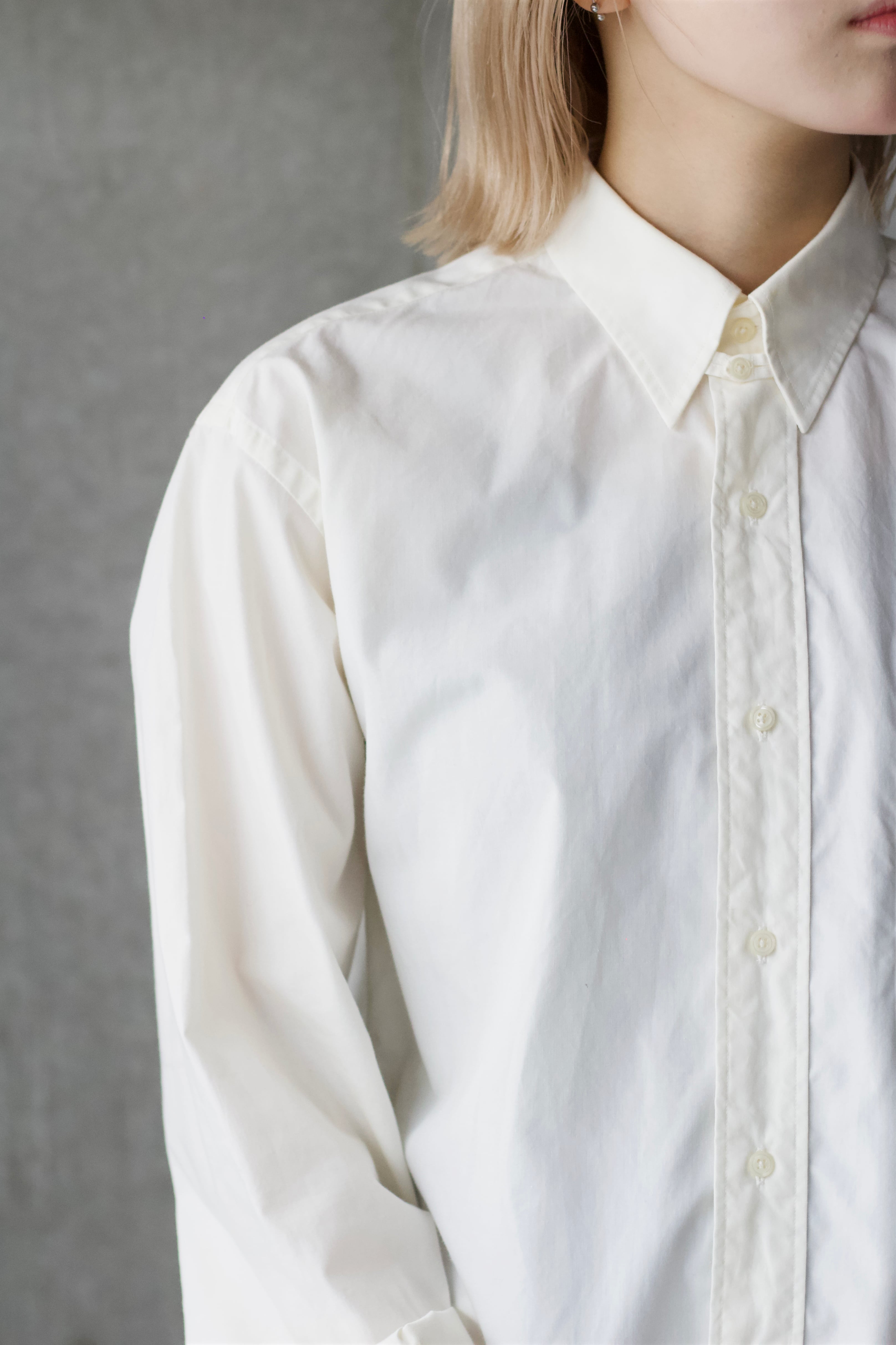 生成りのカラーリングにボタンダウン仕様でミニマムなデザイン。