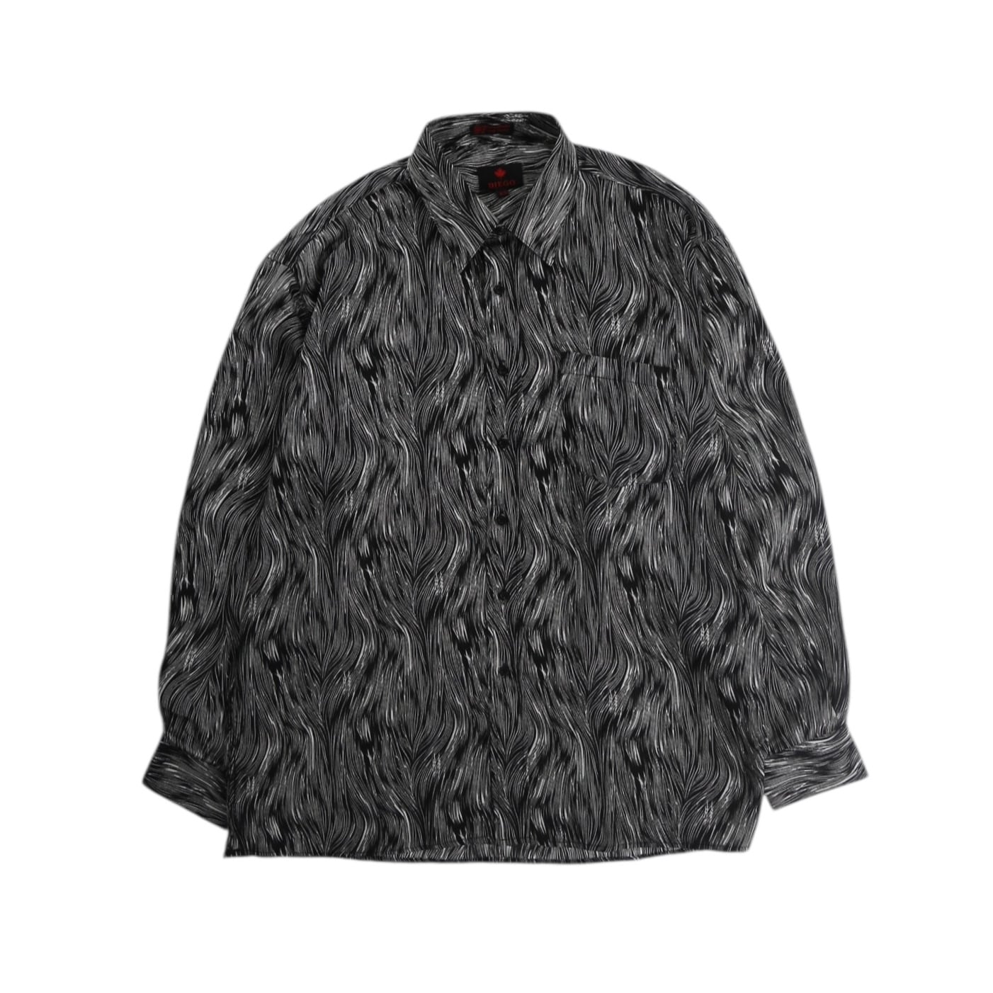 ウェーブ状のモノクロパターンが印象的な長袖シャツ。
