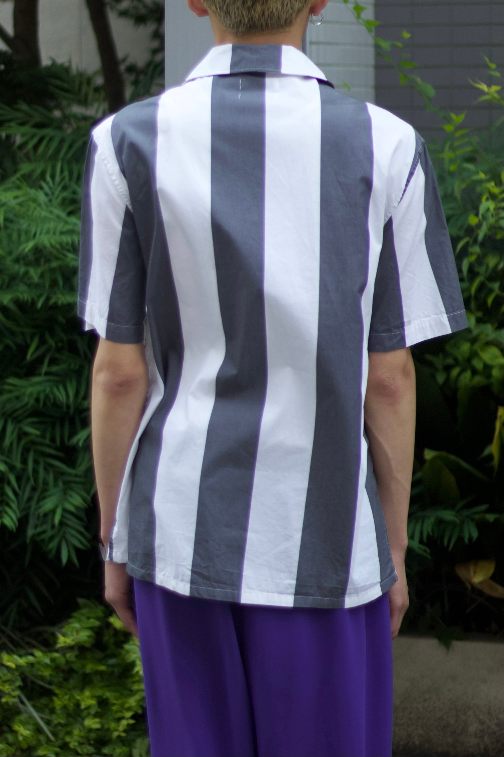 【CUBA】"Calvin Klein" wide pitch stripe open collar shirt -8610-