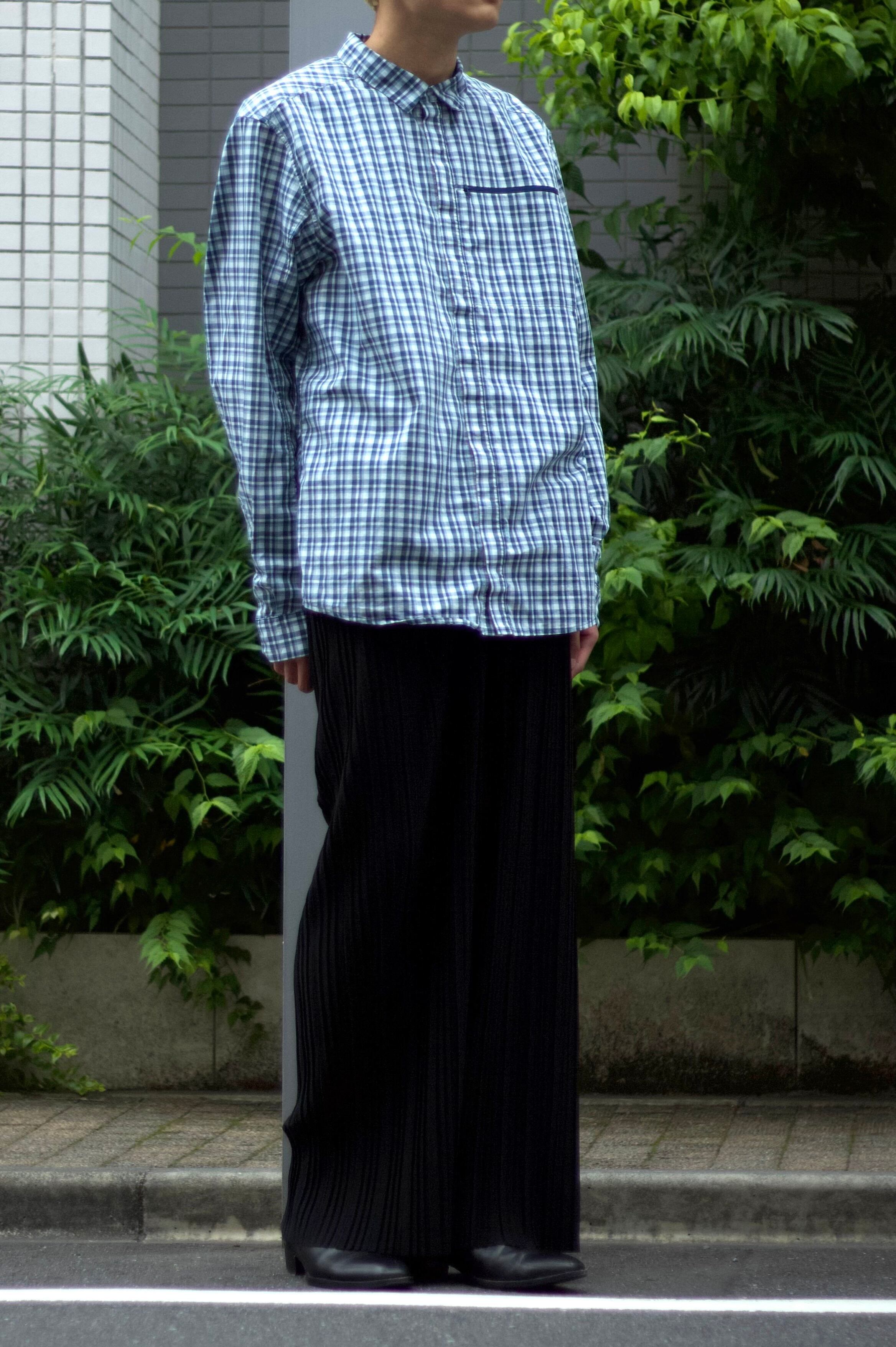 全体に落ち着いたブルー、ホワイト、ブラックの3色を使った細かめのチェック柄で、クラシックなんだけどどこか今っぽい。