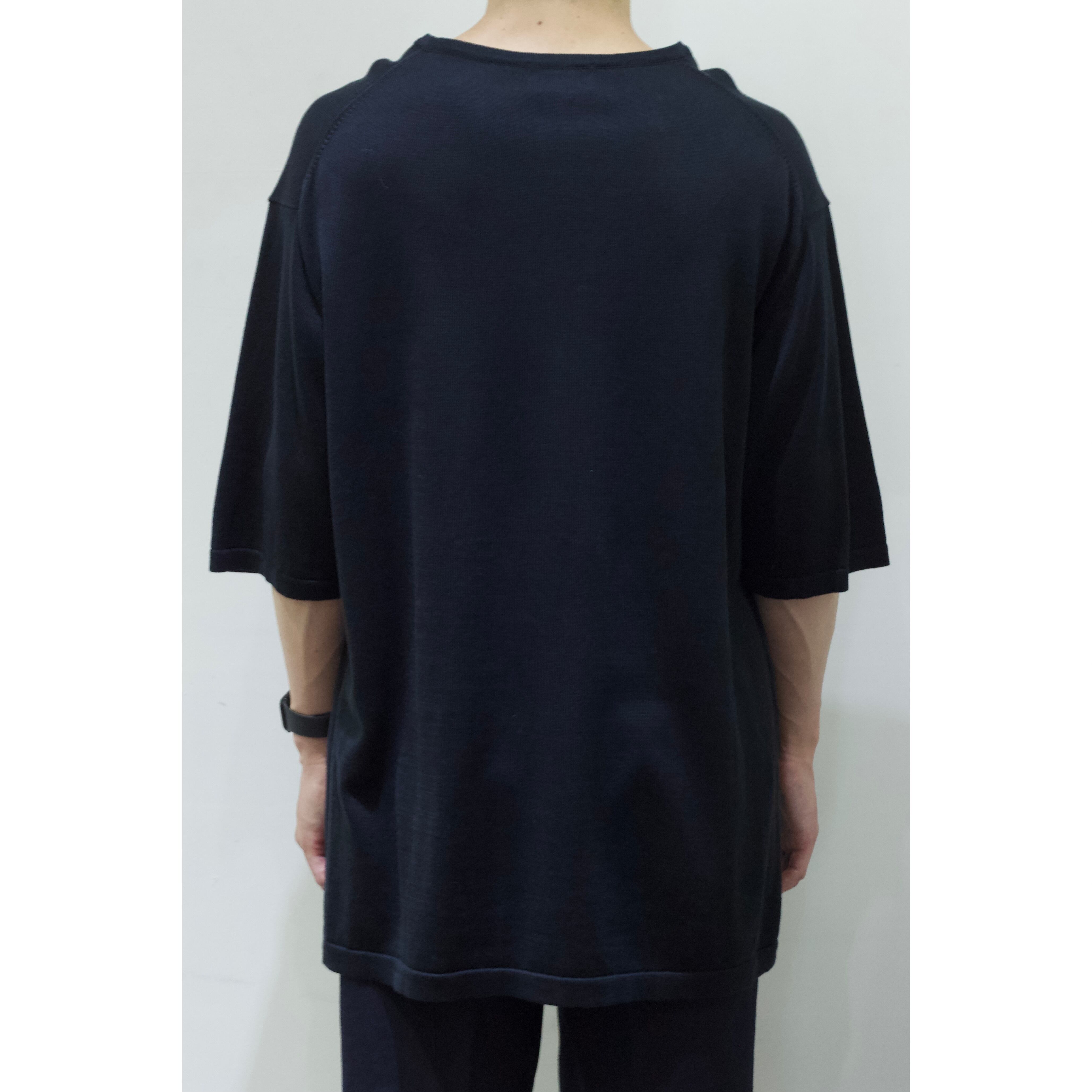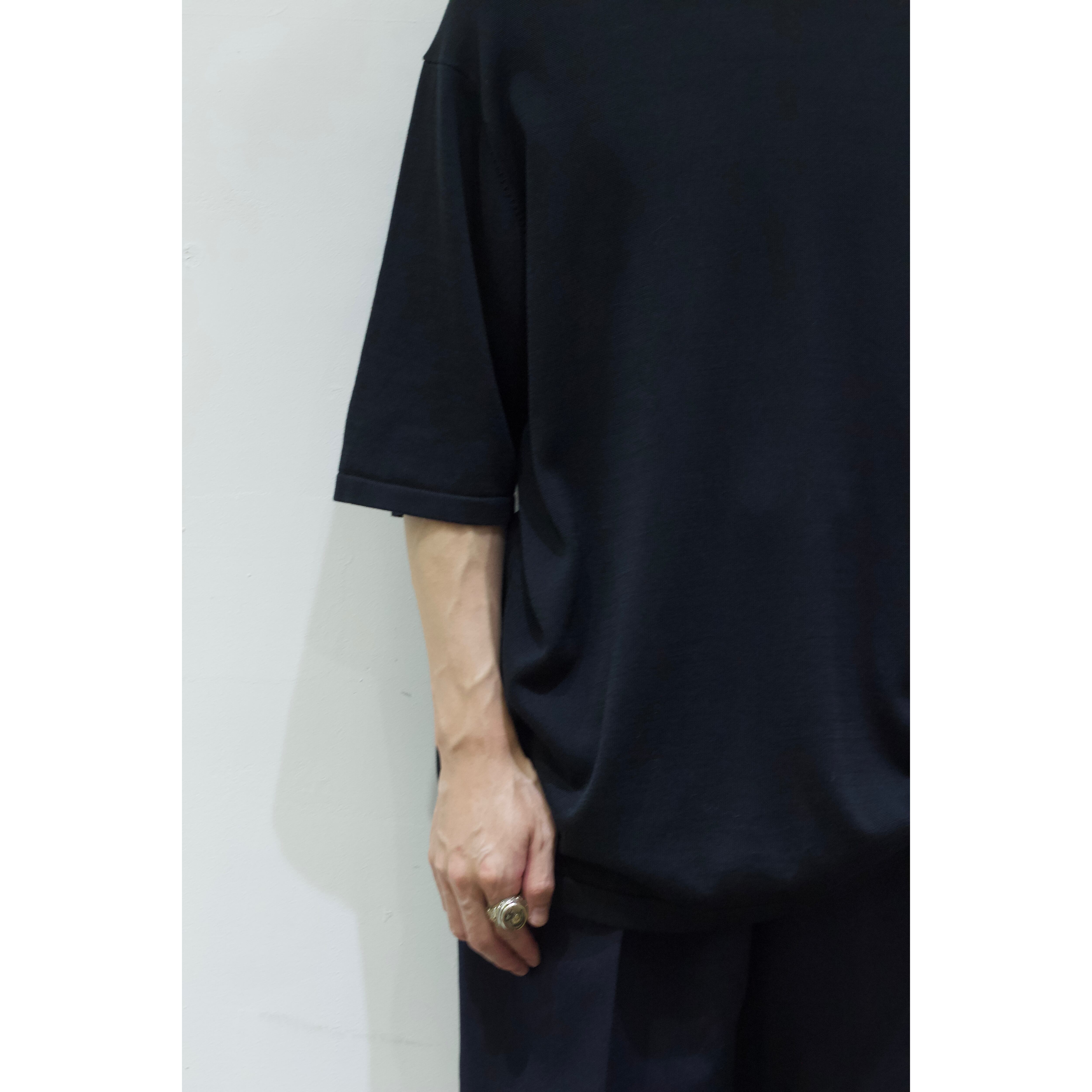 素材は気持ちの良いコットン。シルクなど扱いにくいものが多いニットTですが気兼ねなく家で洗濯できるこちらは完璧。きめ細かいハイゲージに独特の光沢,テロッとトロミのあるニット生地が心地良い。