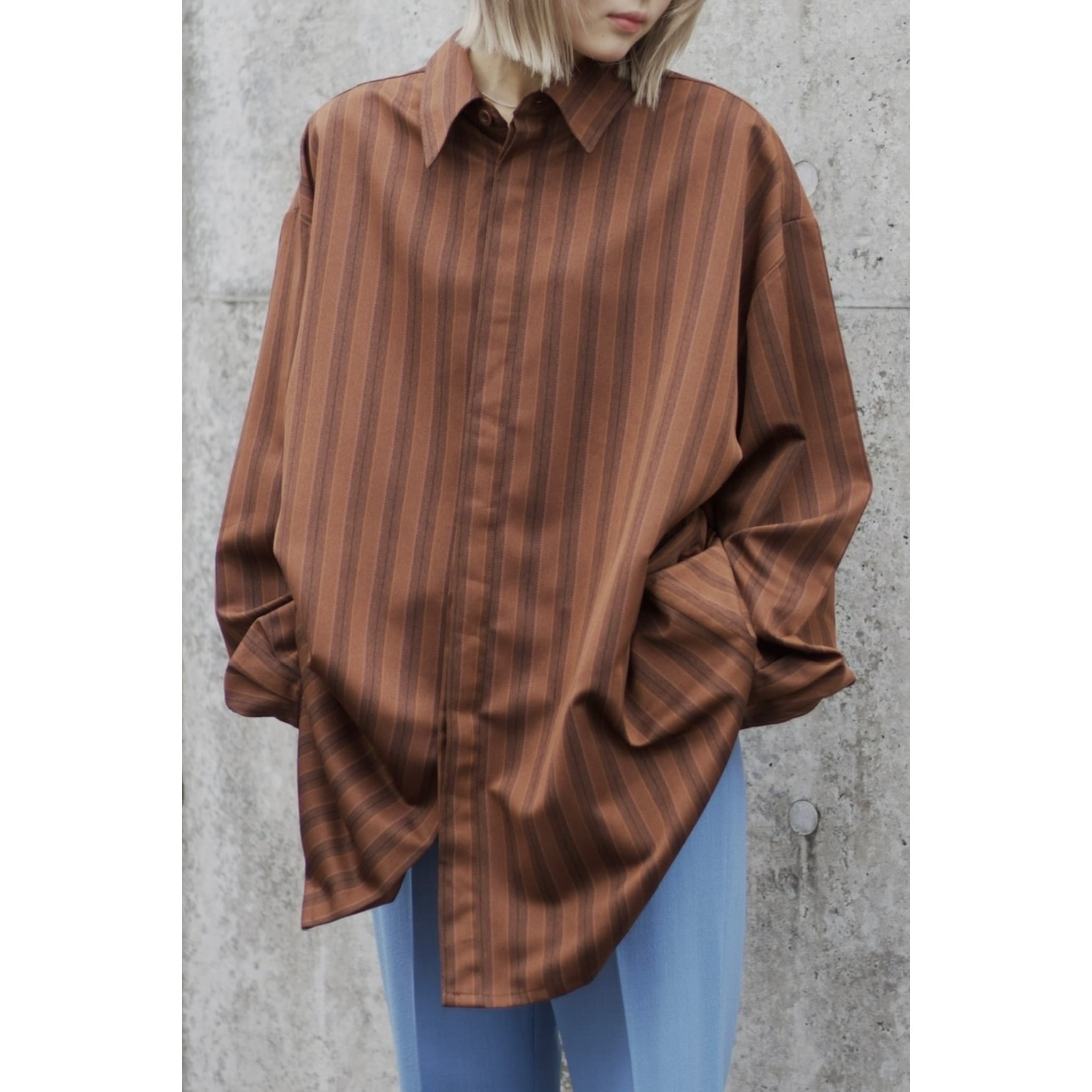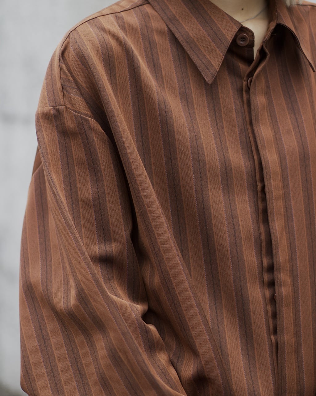 【MAKE MY DAY】1990's "over size" brown color stripe shirt -0490-