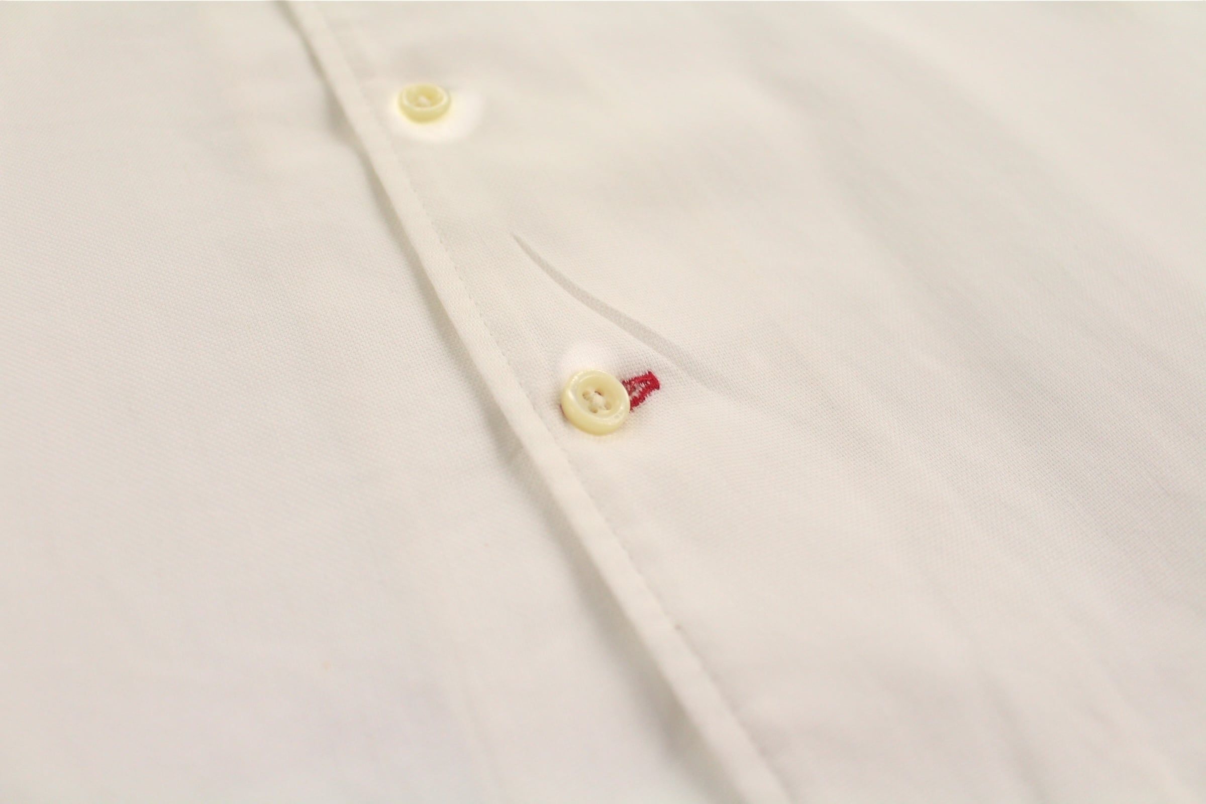 リヨセル・リネン・コットン混紡の、軽やかでとろみのあるファブリックを使用したオールホワイトのオープンカラーシャツ。