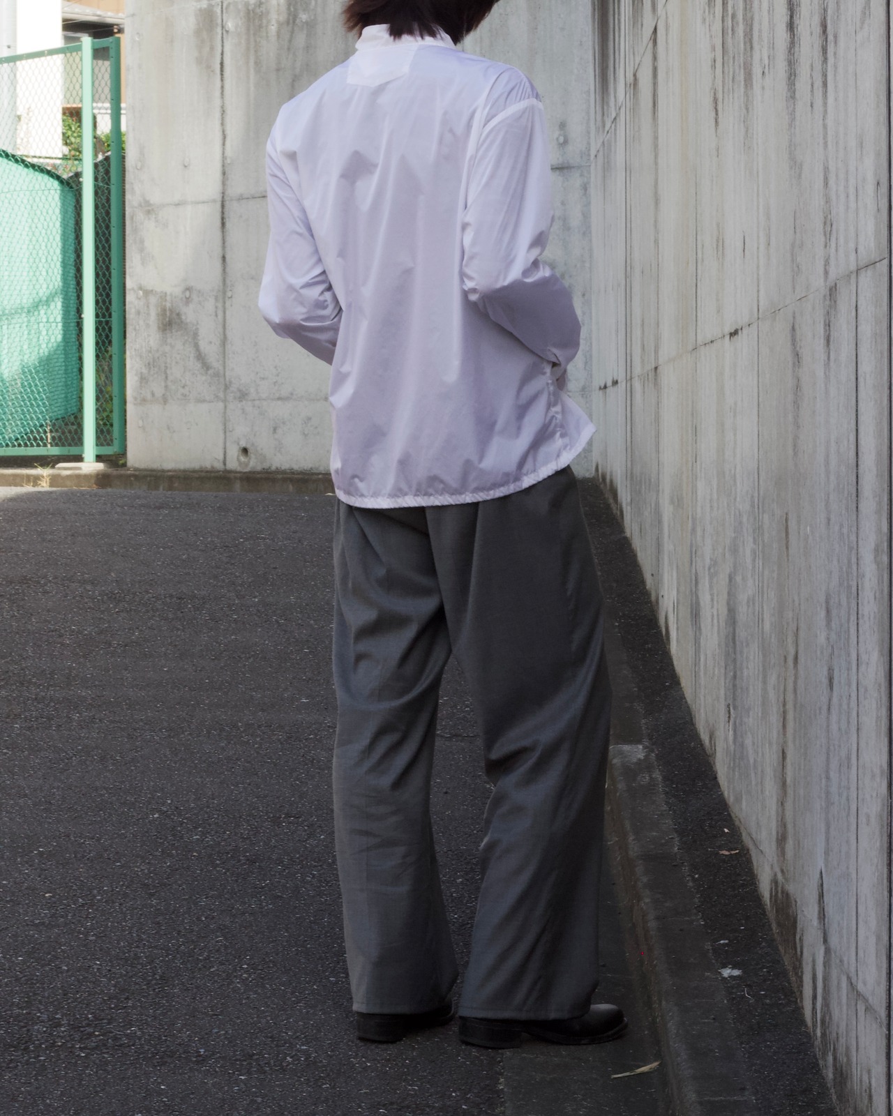 チャコールグレーのスラックスは個人的に好きでよく愛用してるのですが、トップスで遊んであげてもうまくまとまってくれる。