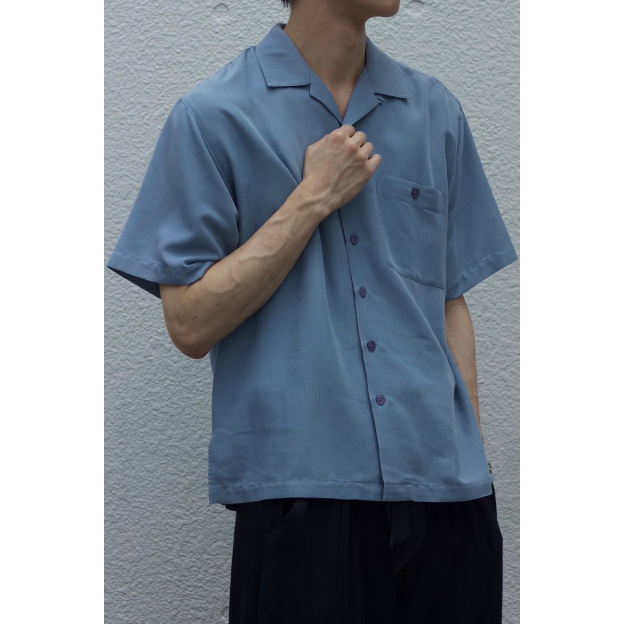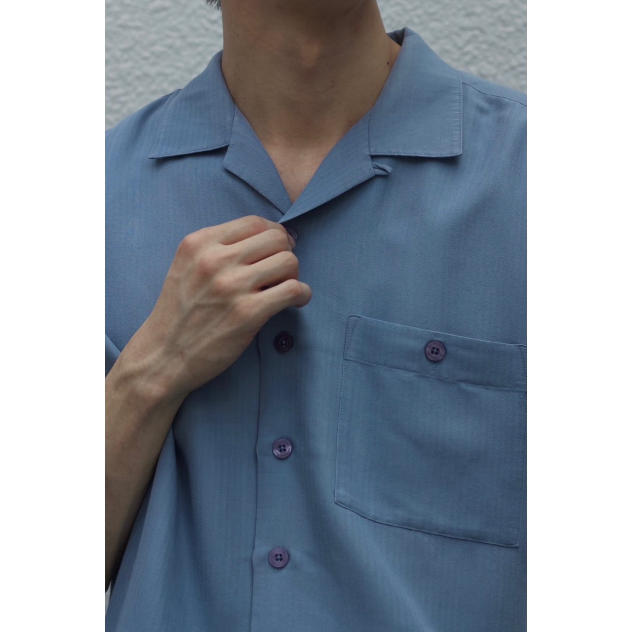 夏らしい爽やかなスモークブルーカラーで大人っぽくオープンカラー仕様で抜け感も◎レーヨン65%混紡ながらも家で洗濯できるイージーケアで夏場にも気兼ねなく使えます☺︎