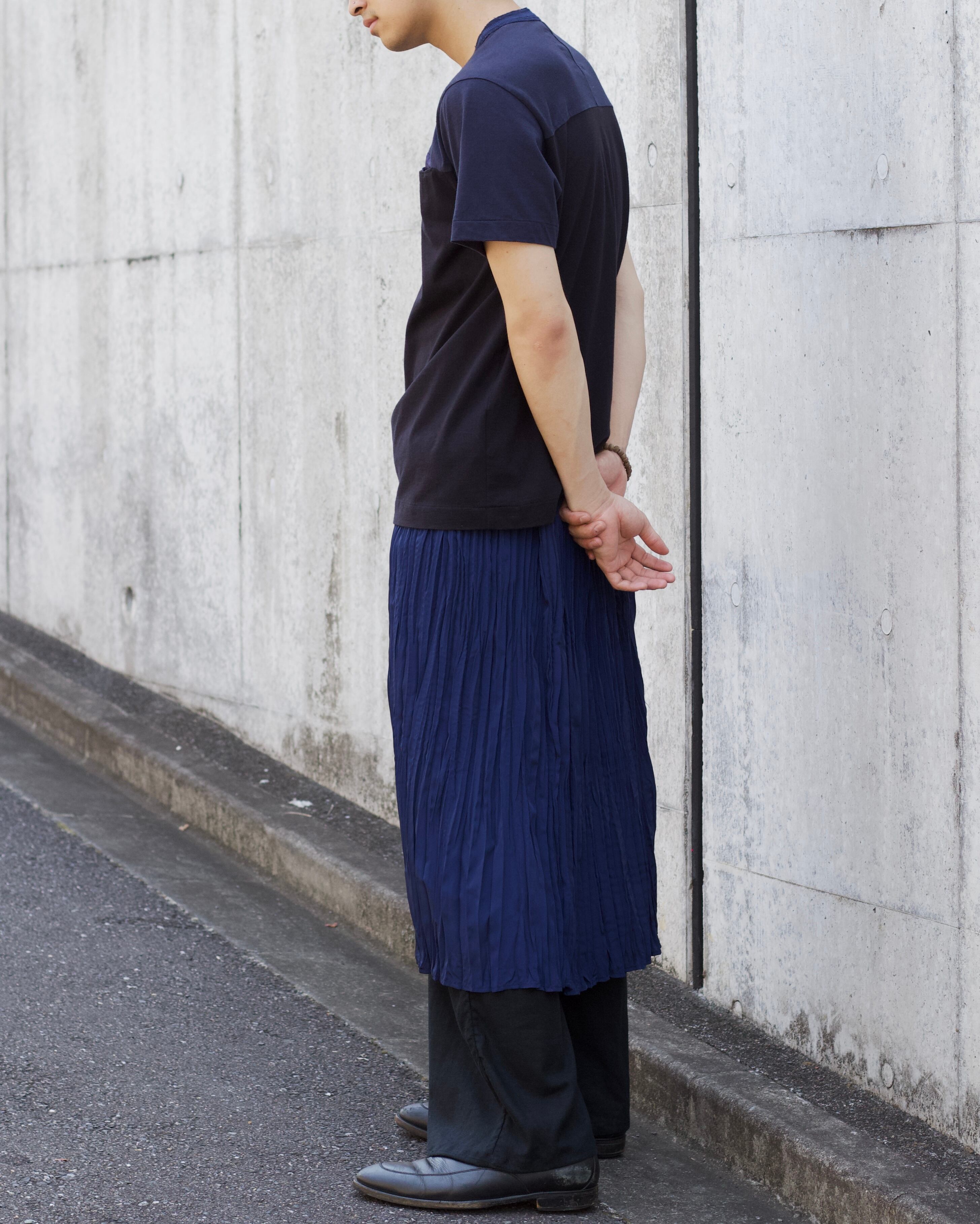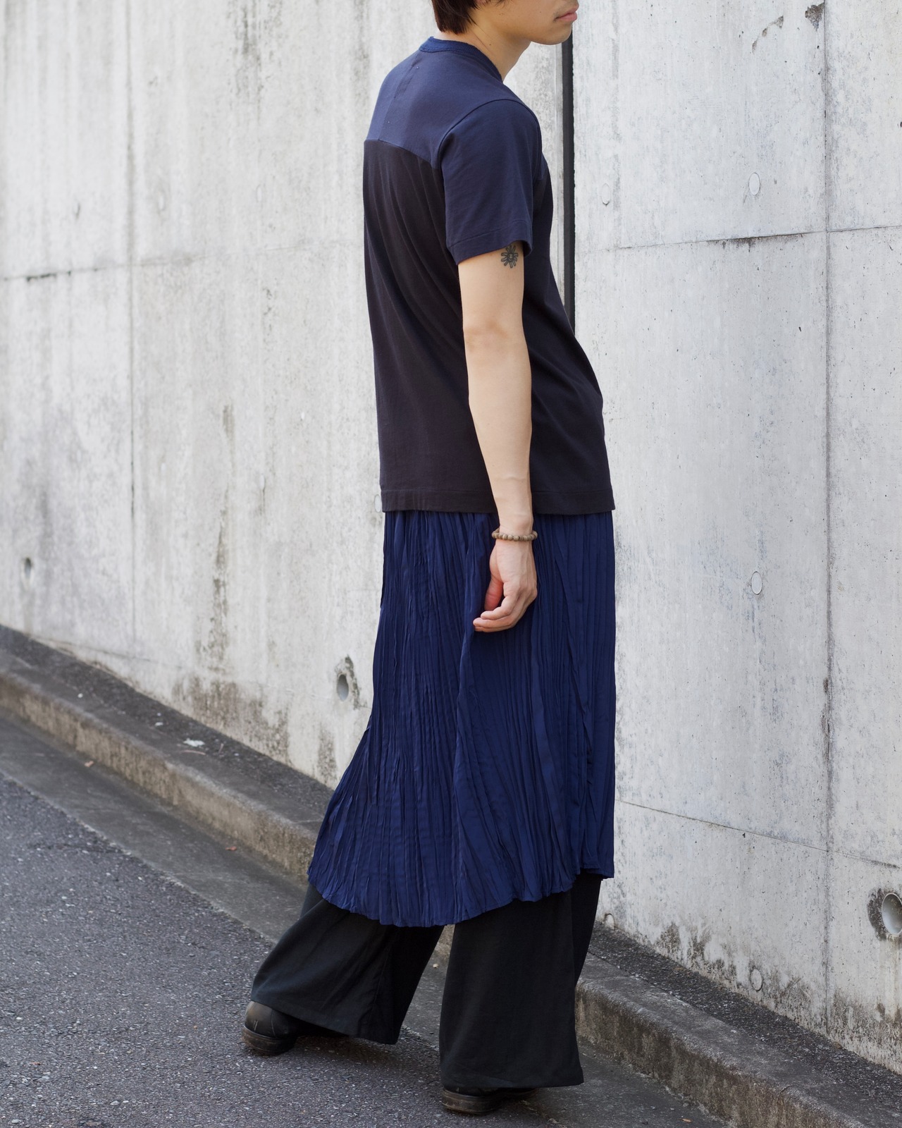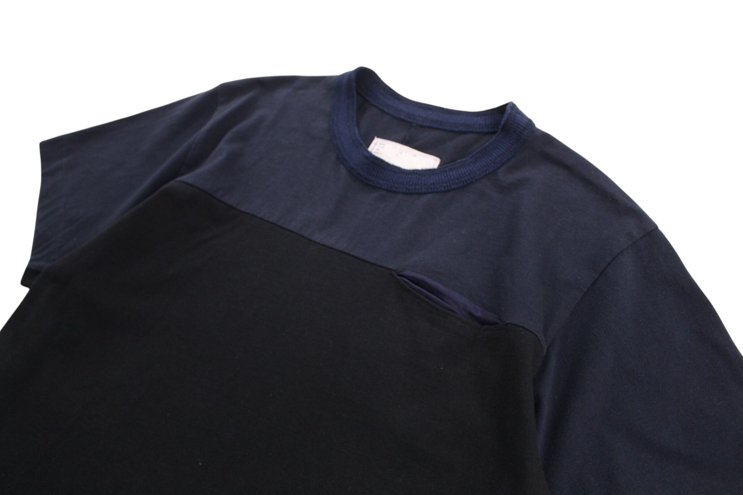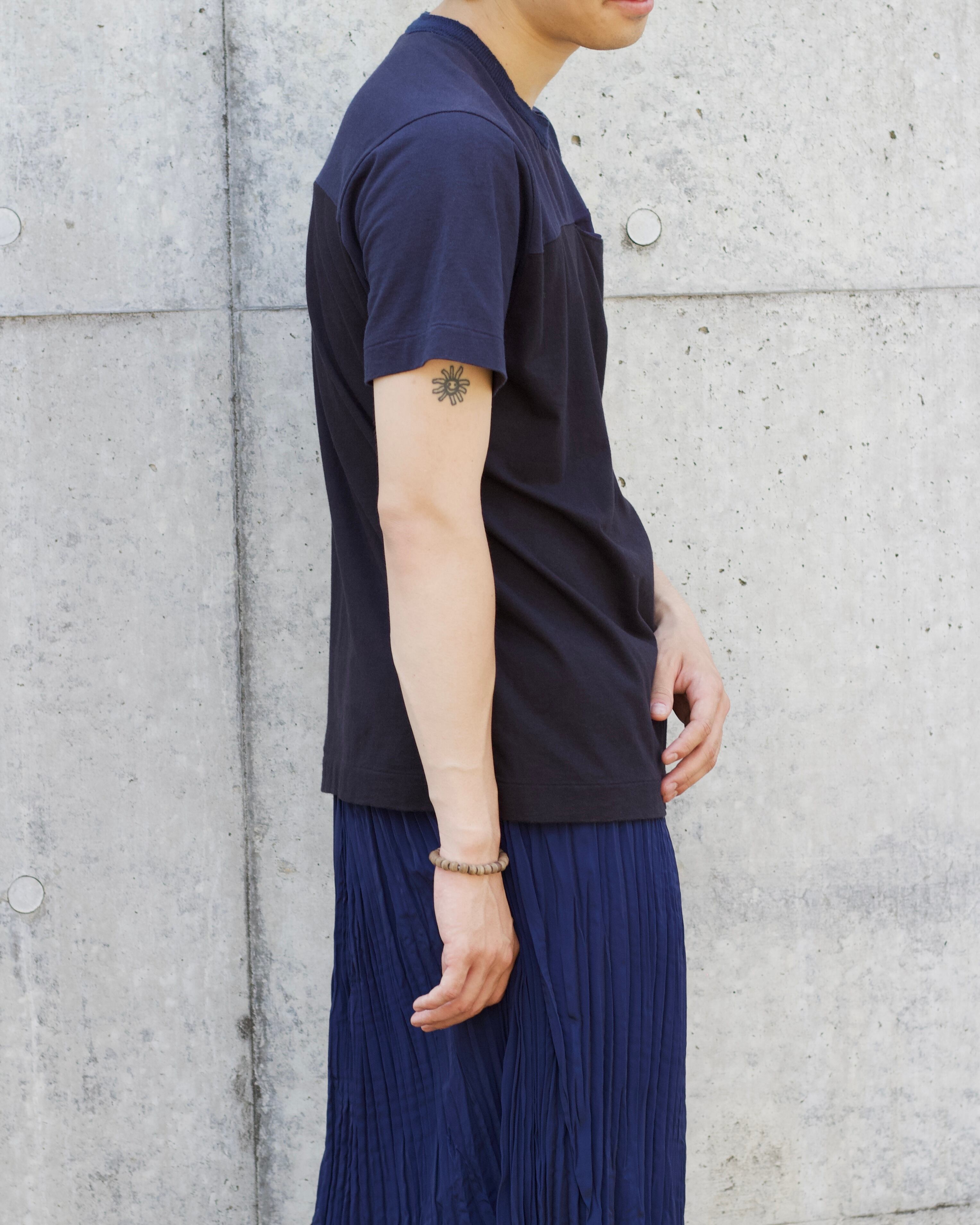 2015年モデルのものでブラックとネイビーの生地を掛け合わせたバイカラーなTシャツ。胸には小さめなポケットが付き、デザイン性も◎