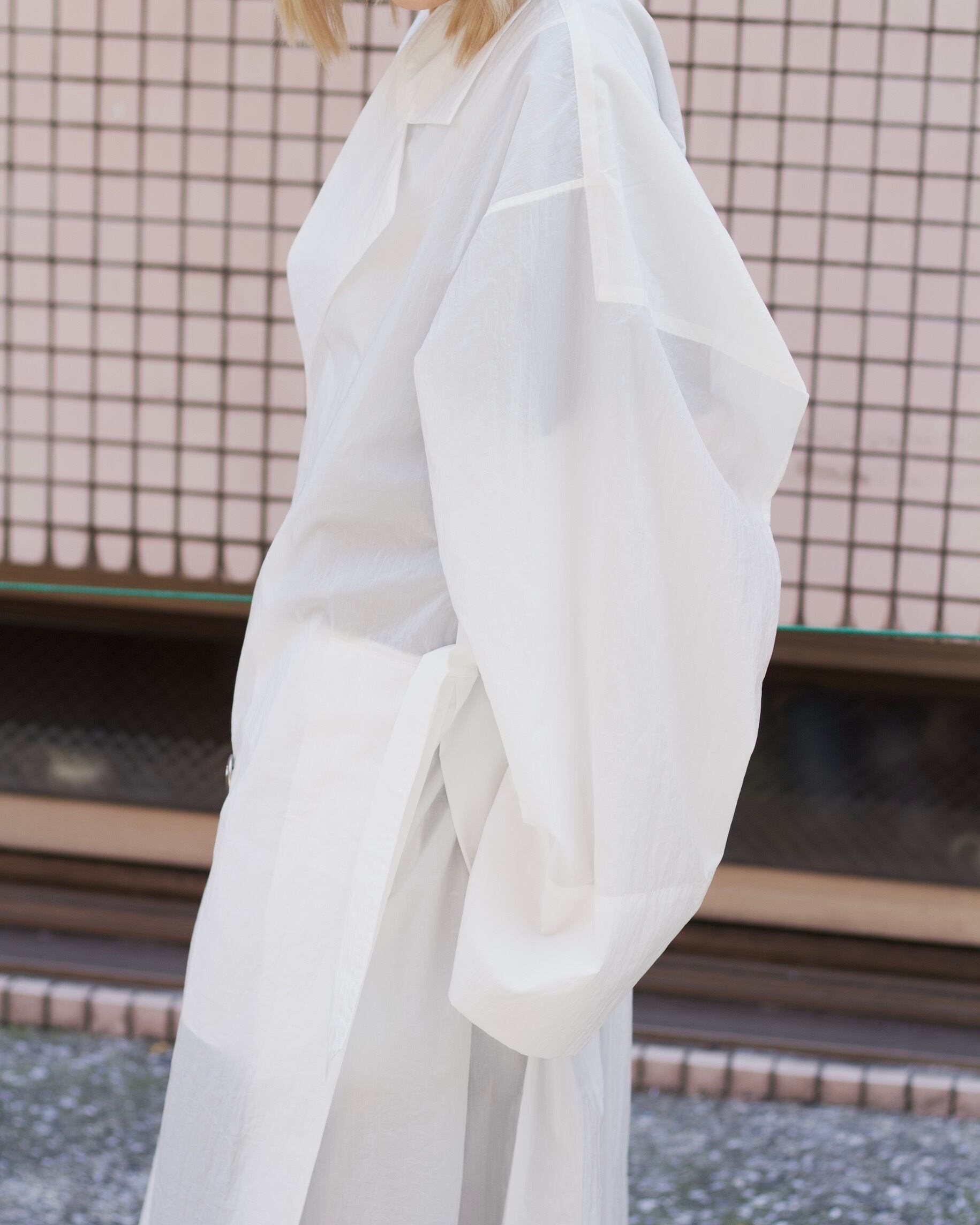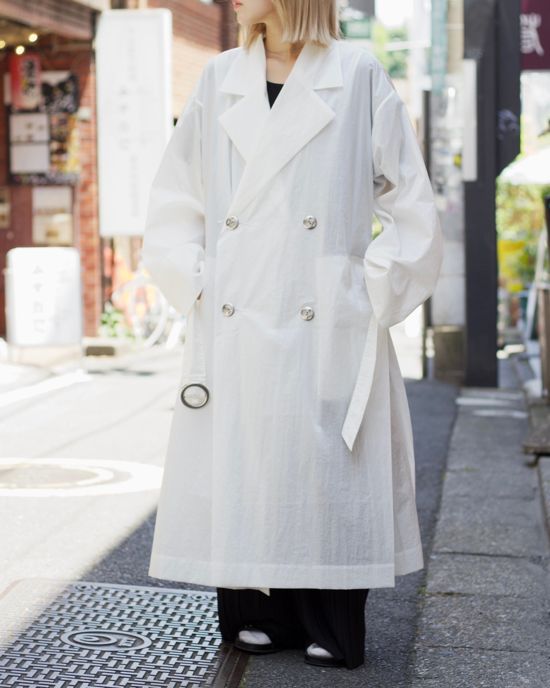 【MAKE MY DAY】1990s "ISSEYMIYAKE" white nylon trench coat -0514-