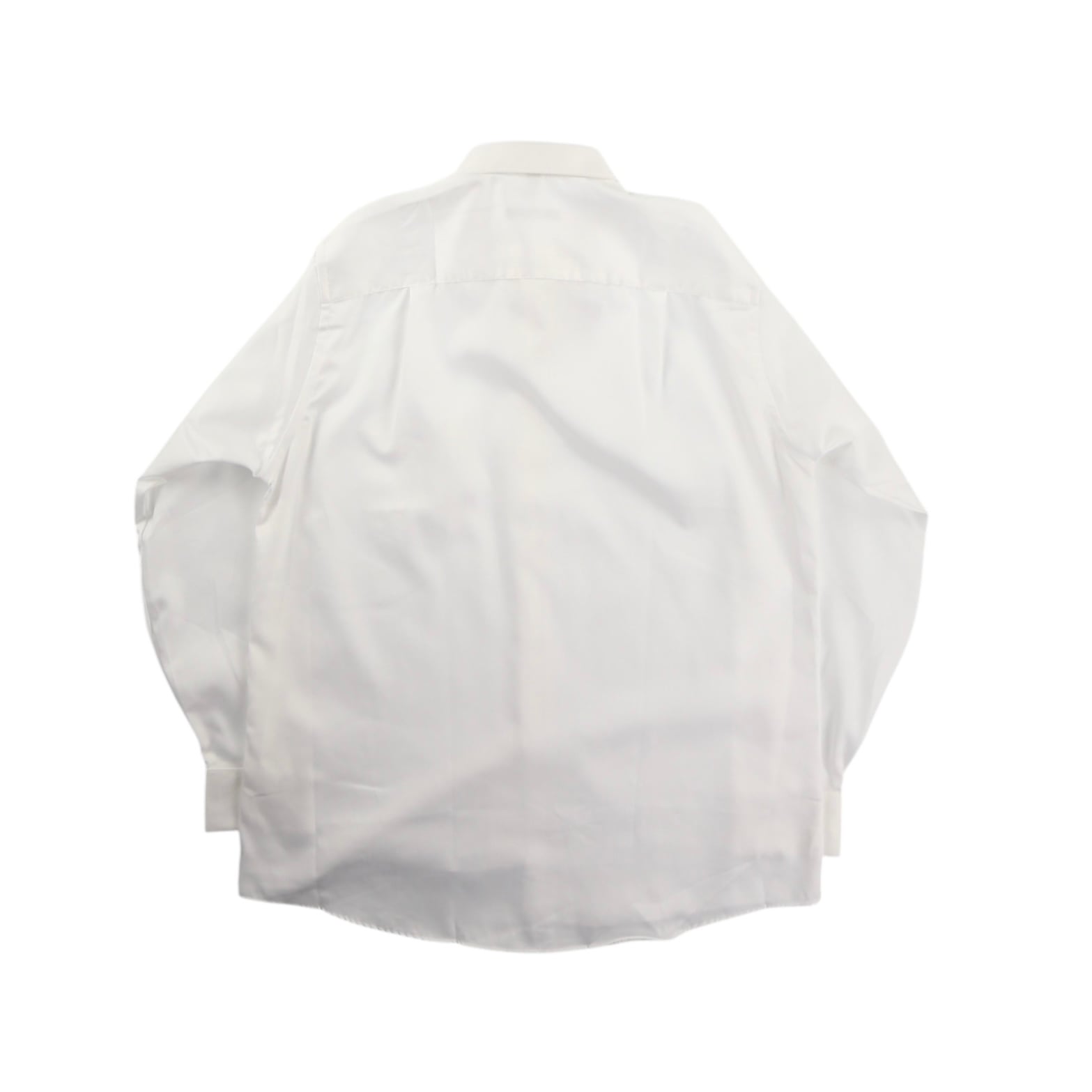 状態が完璧。ツヤのあるコットンポリの素材感がラグジュアリーに。汎用性の高い白シャツです。このブランドだと出にくい色味でもあります。