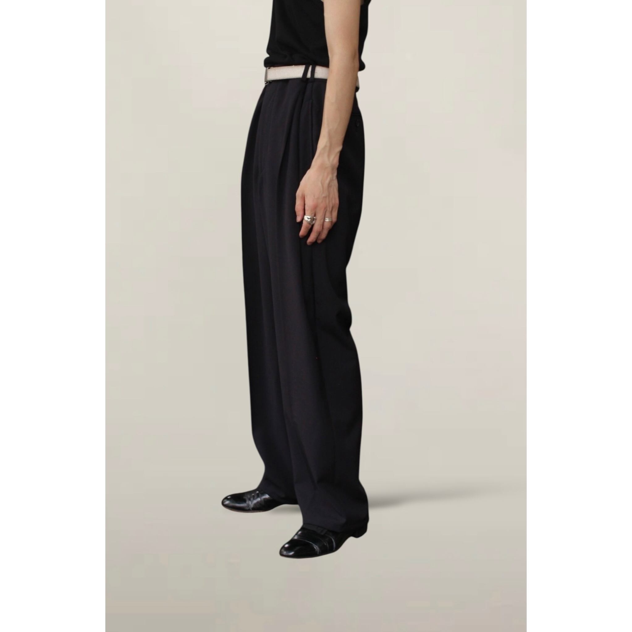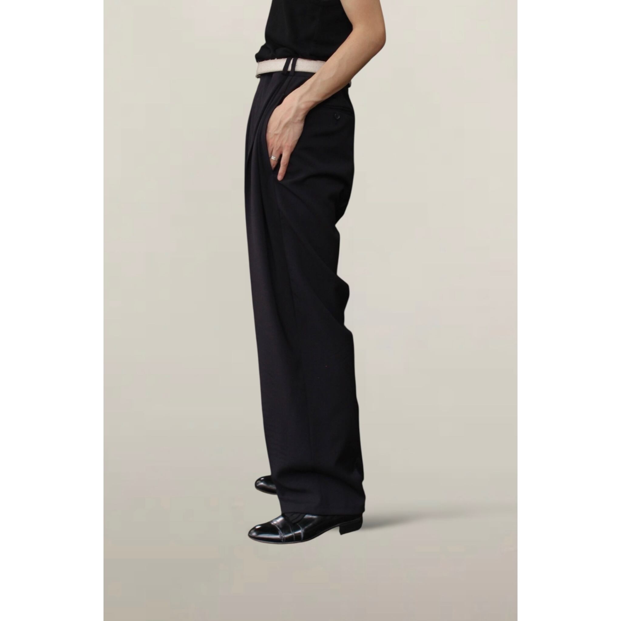 【OTSU】1990's "Yves Saint Laurent" summer wool 2-tuck wide slacks -13228-