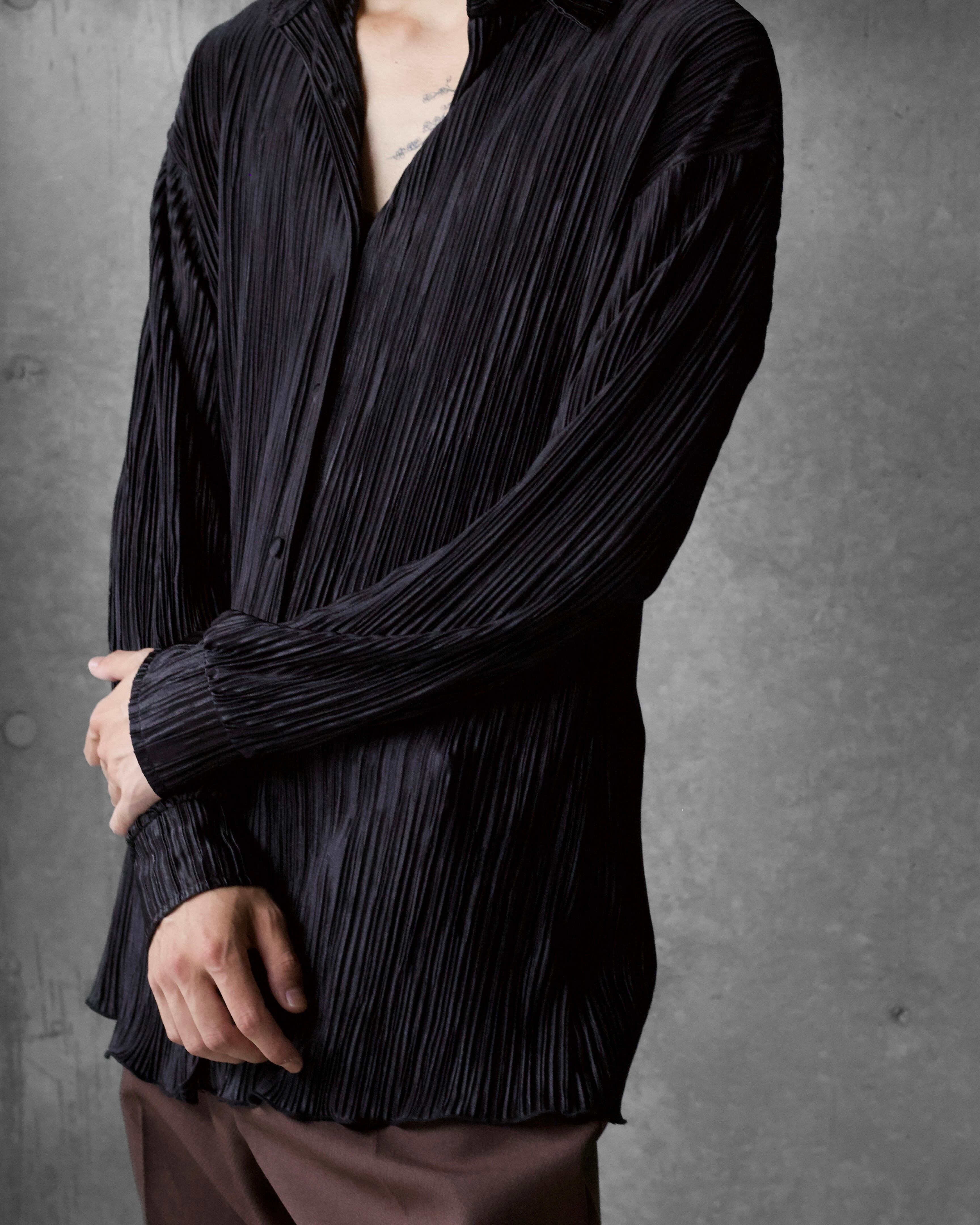 【COUOTSU】vintage shiny black pleats shirt -3317-