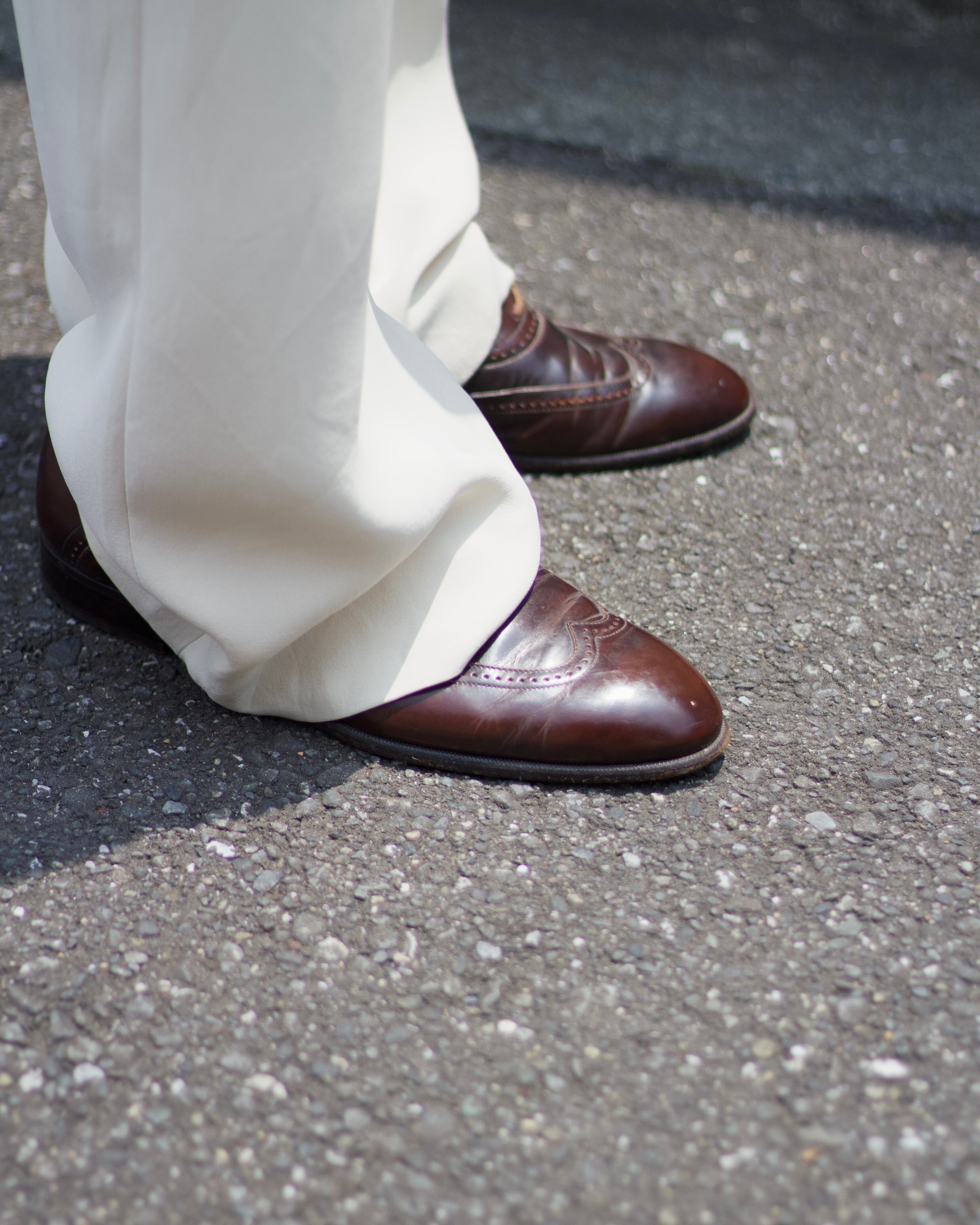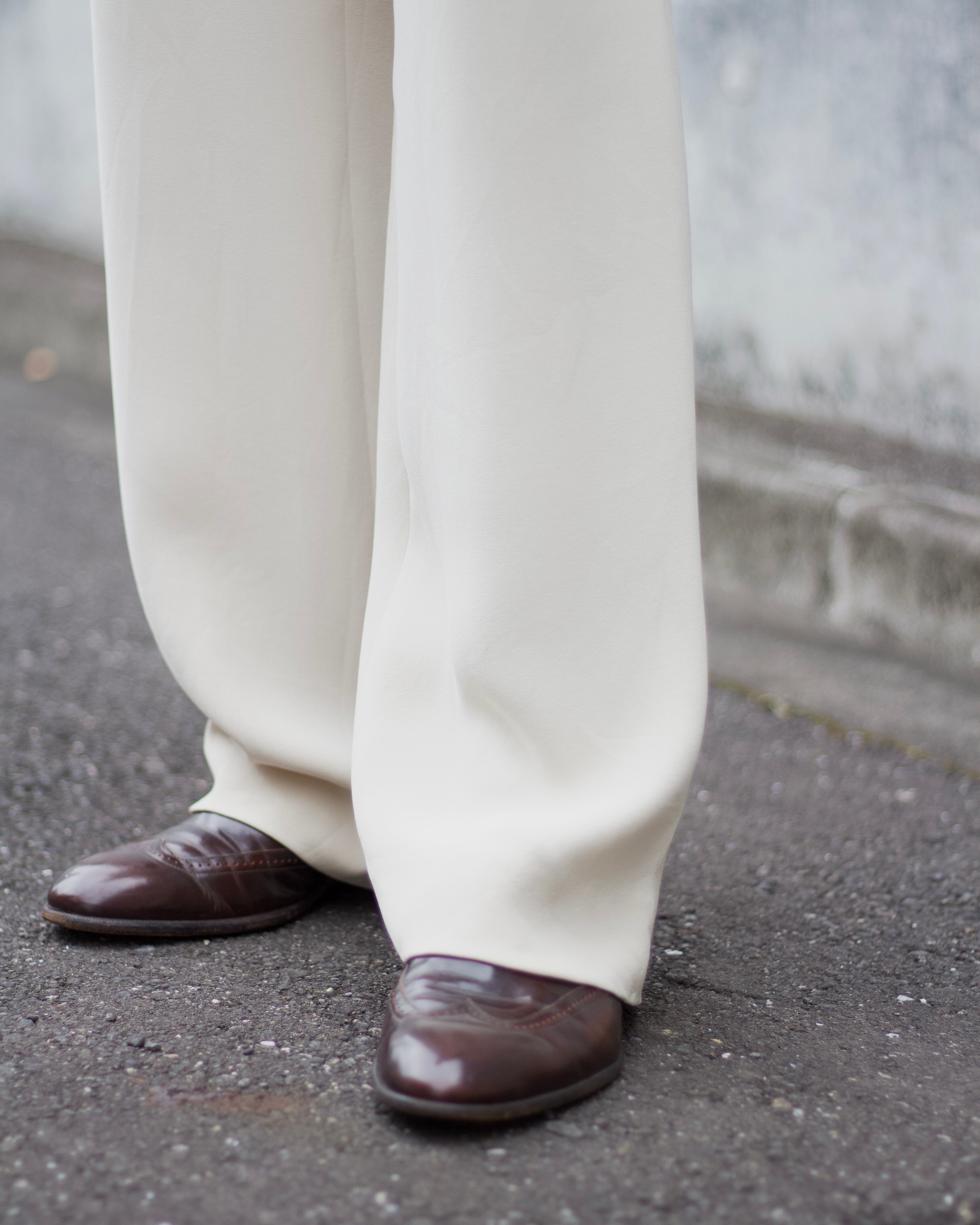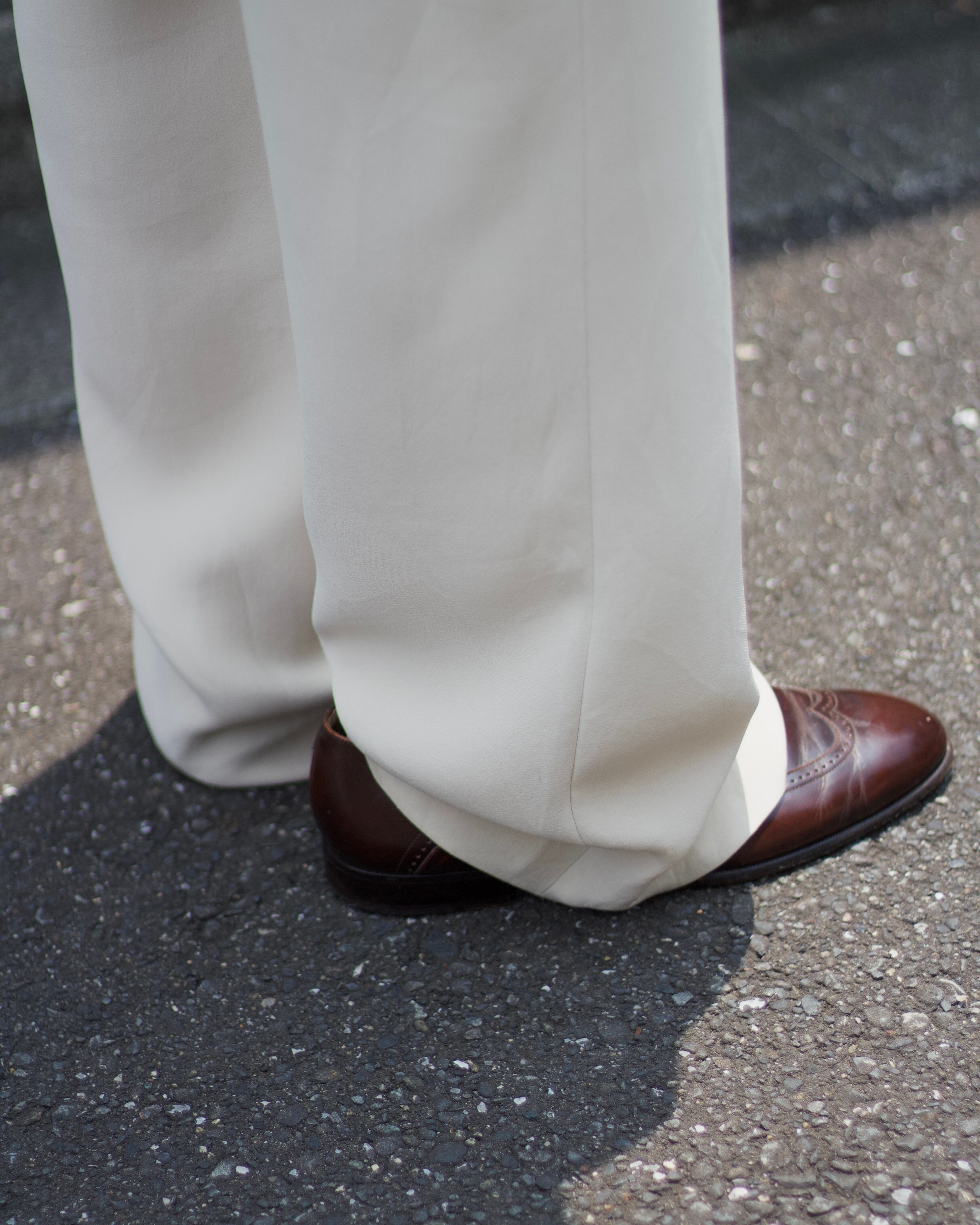 オフホワイトのカラーリングで柔らかい印象と品のある1着。