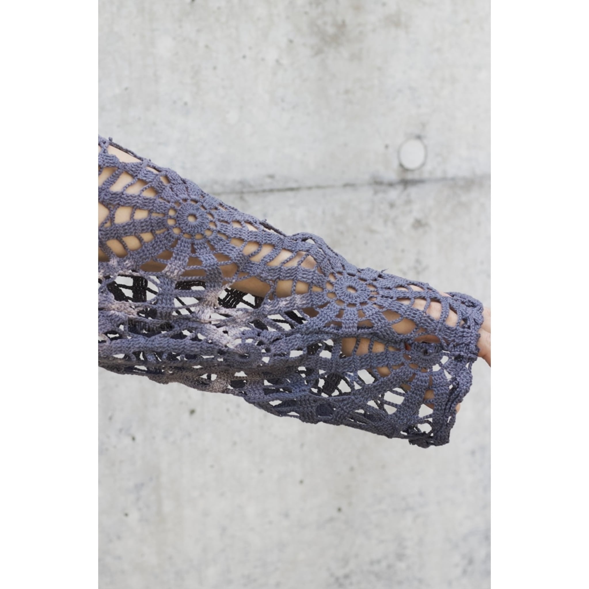 細やかなレース編みのディテールが透け感あり、素材感の際立ち方が堪らない。