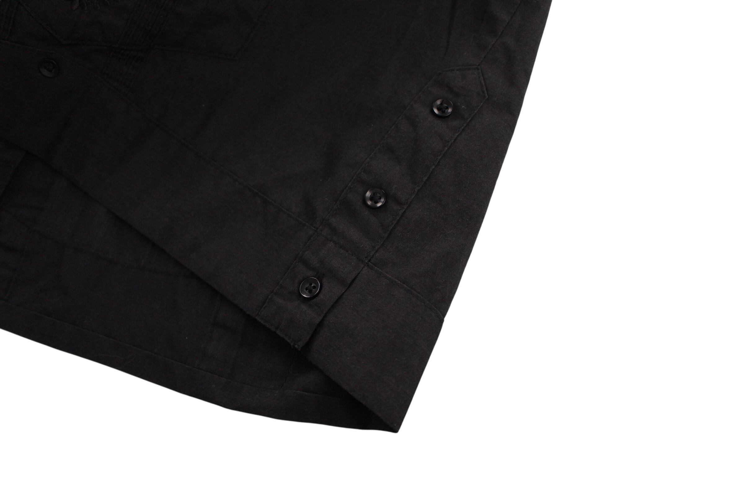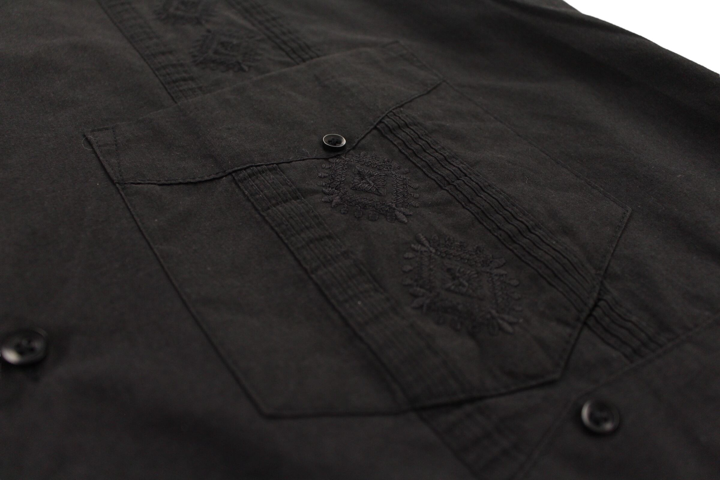 キューバシャツ独自の刺繍デザインもオールブラックカラーだからこそ、どこかモードな雰囲気も。