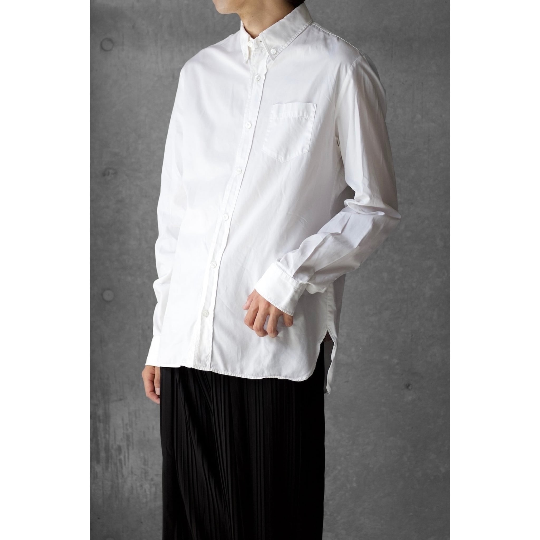 クラシカルなボタンダウンの襟元と、 ラインの綺麗に出るシルエット。