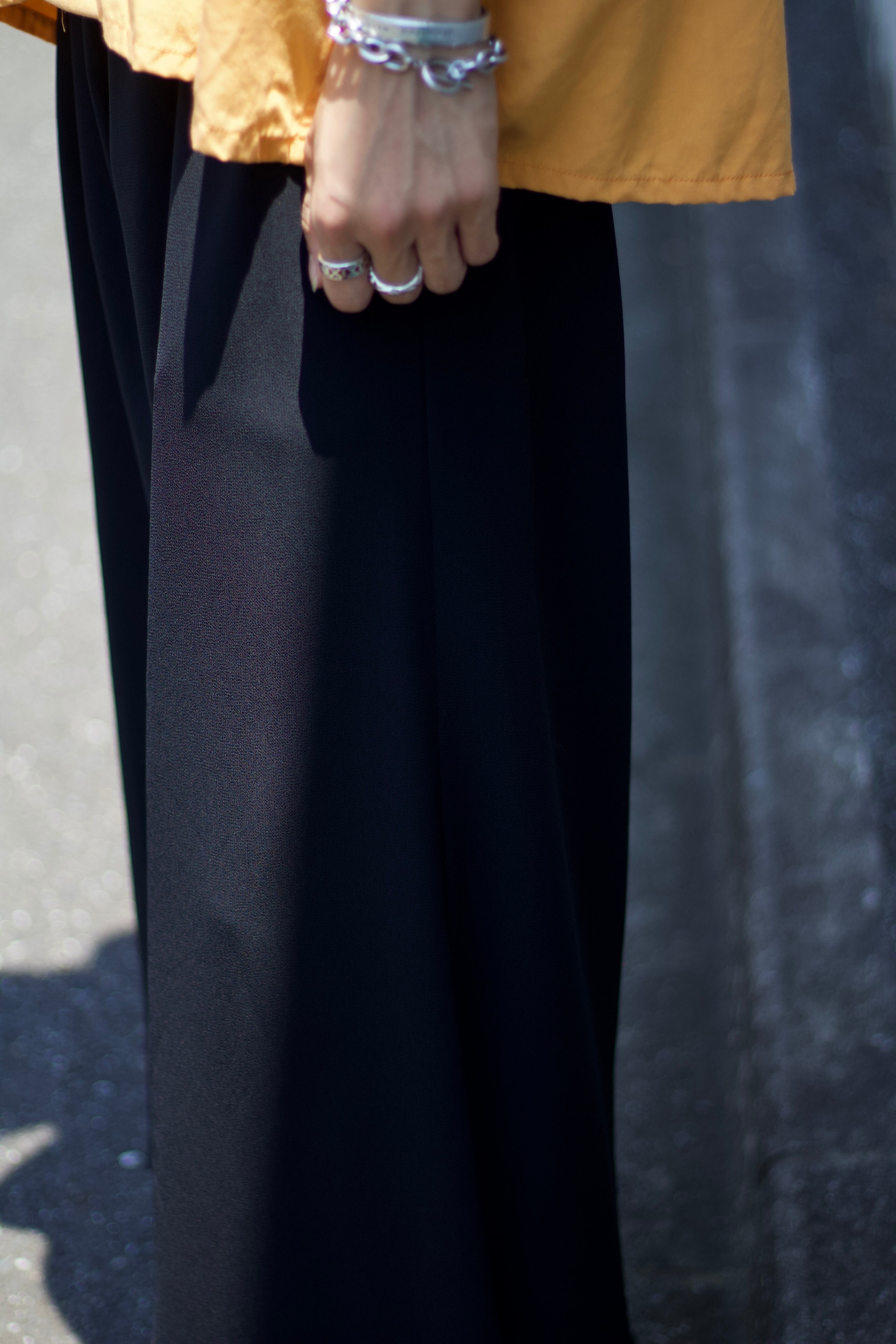【COUOTSU】 Wide buggy silhouette black design easy pants -3365-