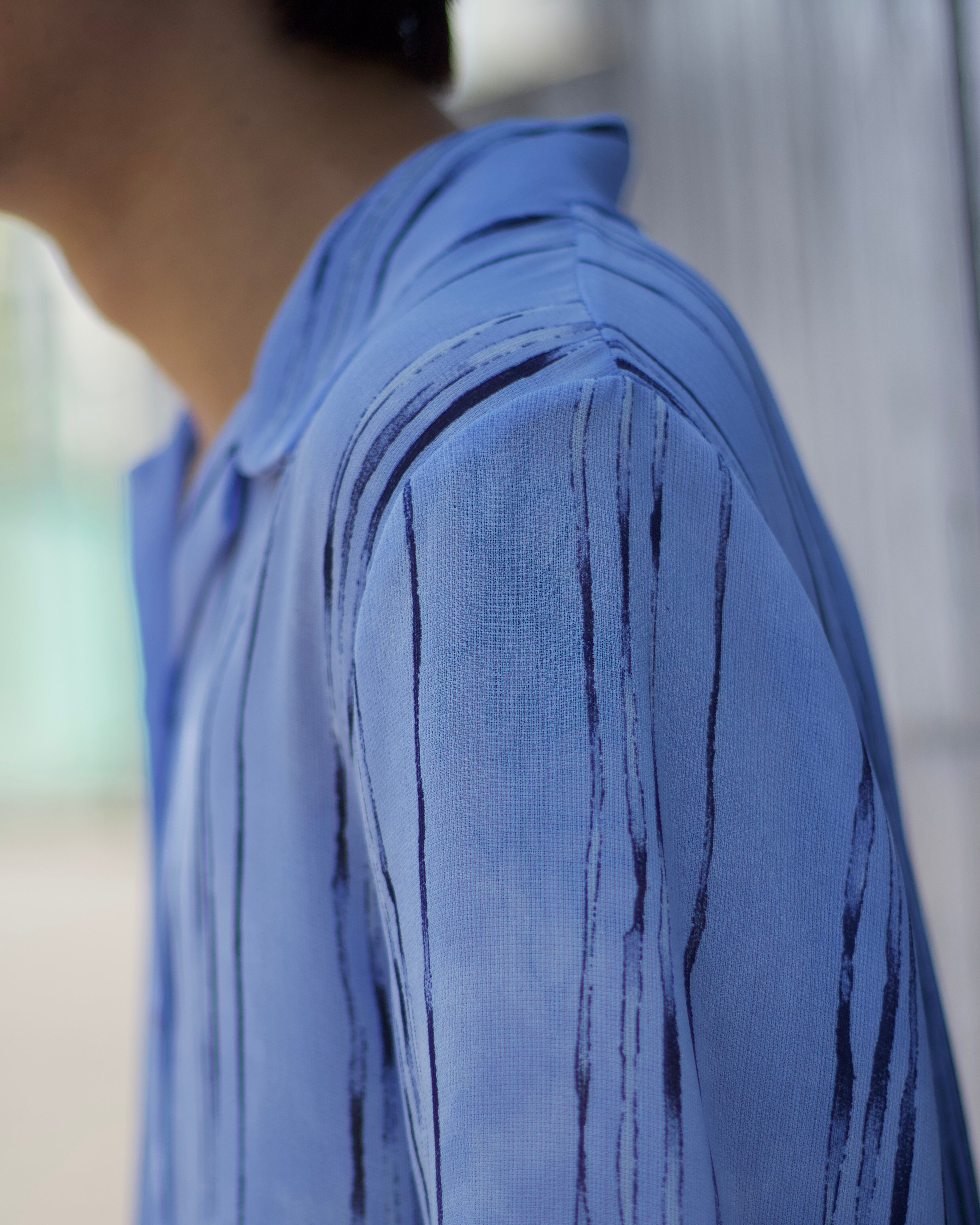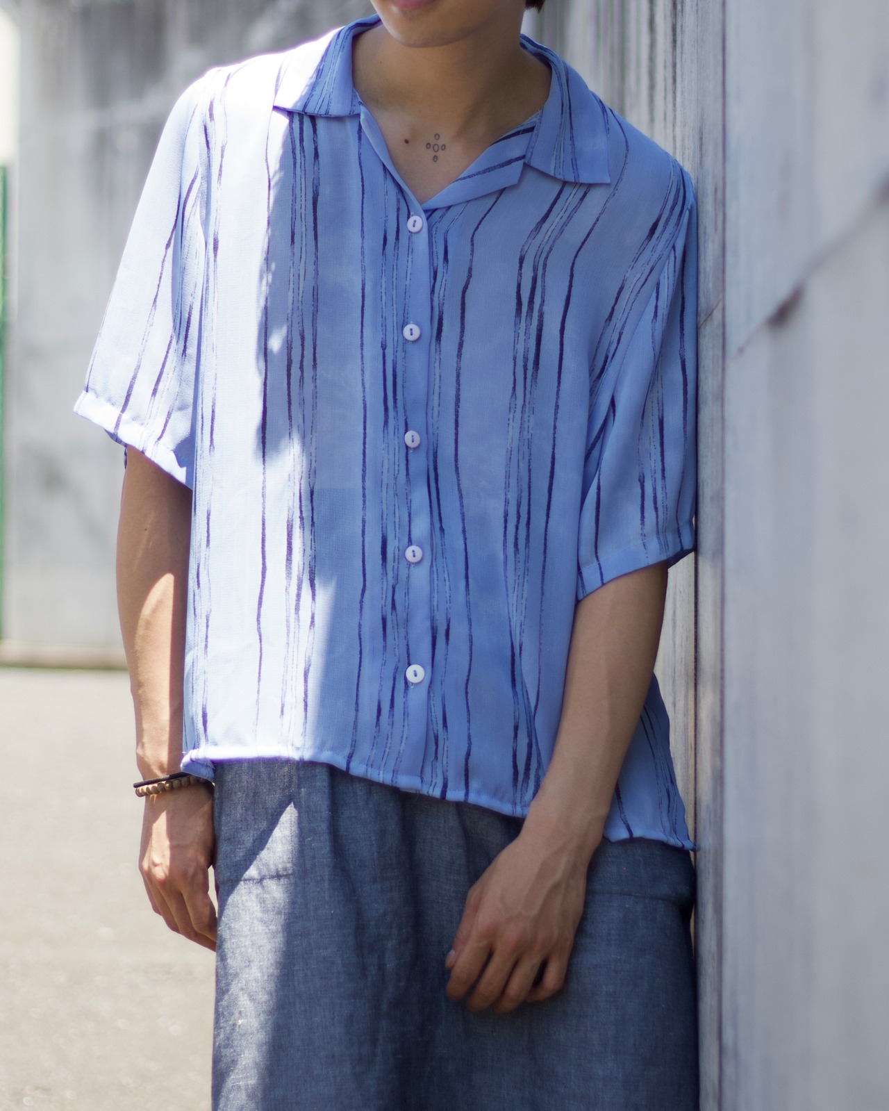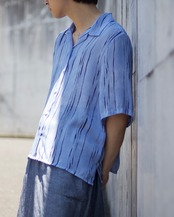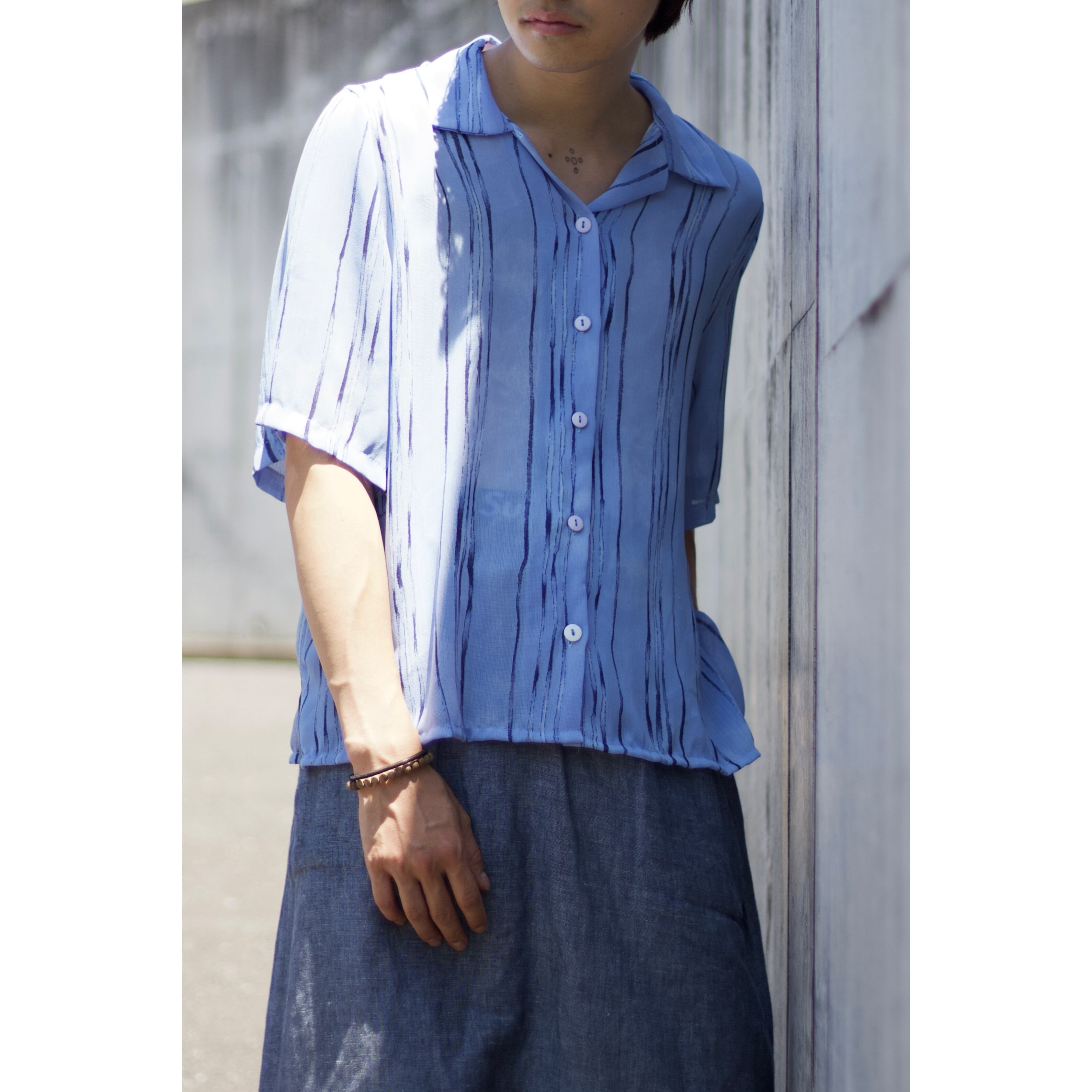 【MAKE MY DAY】Sheer stripe open collar shirt -3853-