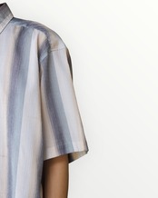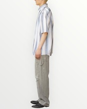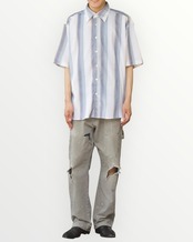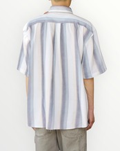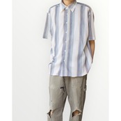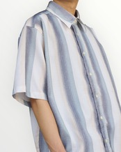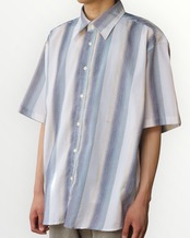 スモークブルーをベースにブルー、ベージュ、ホワイトが絶妙に混じり合う色合いで、着るだけでスタイリングに深みを与えてくれる1枚です。