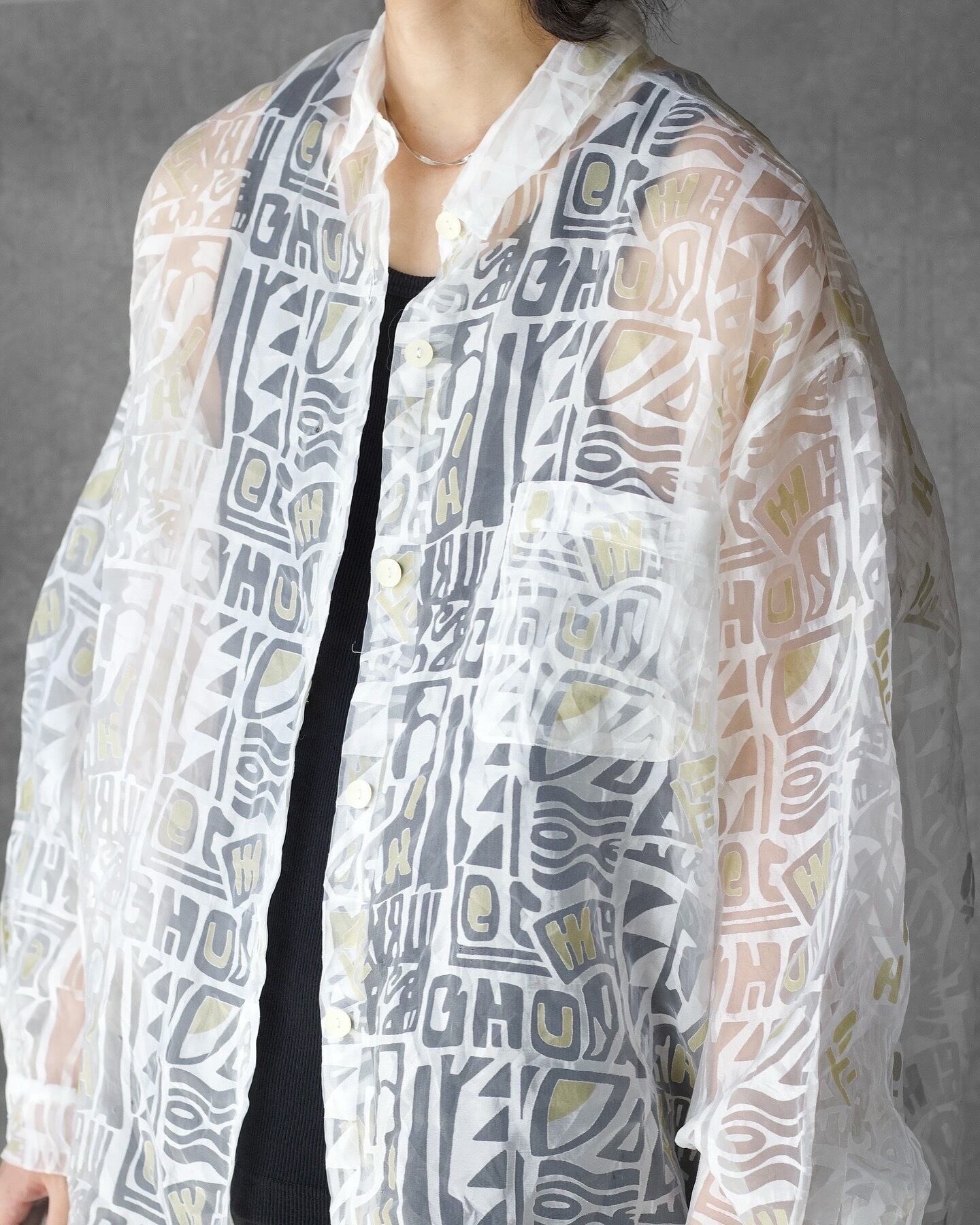 【COUOTSU】vintage art pattern over size sheer shirt-6282-