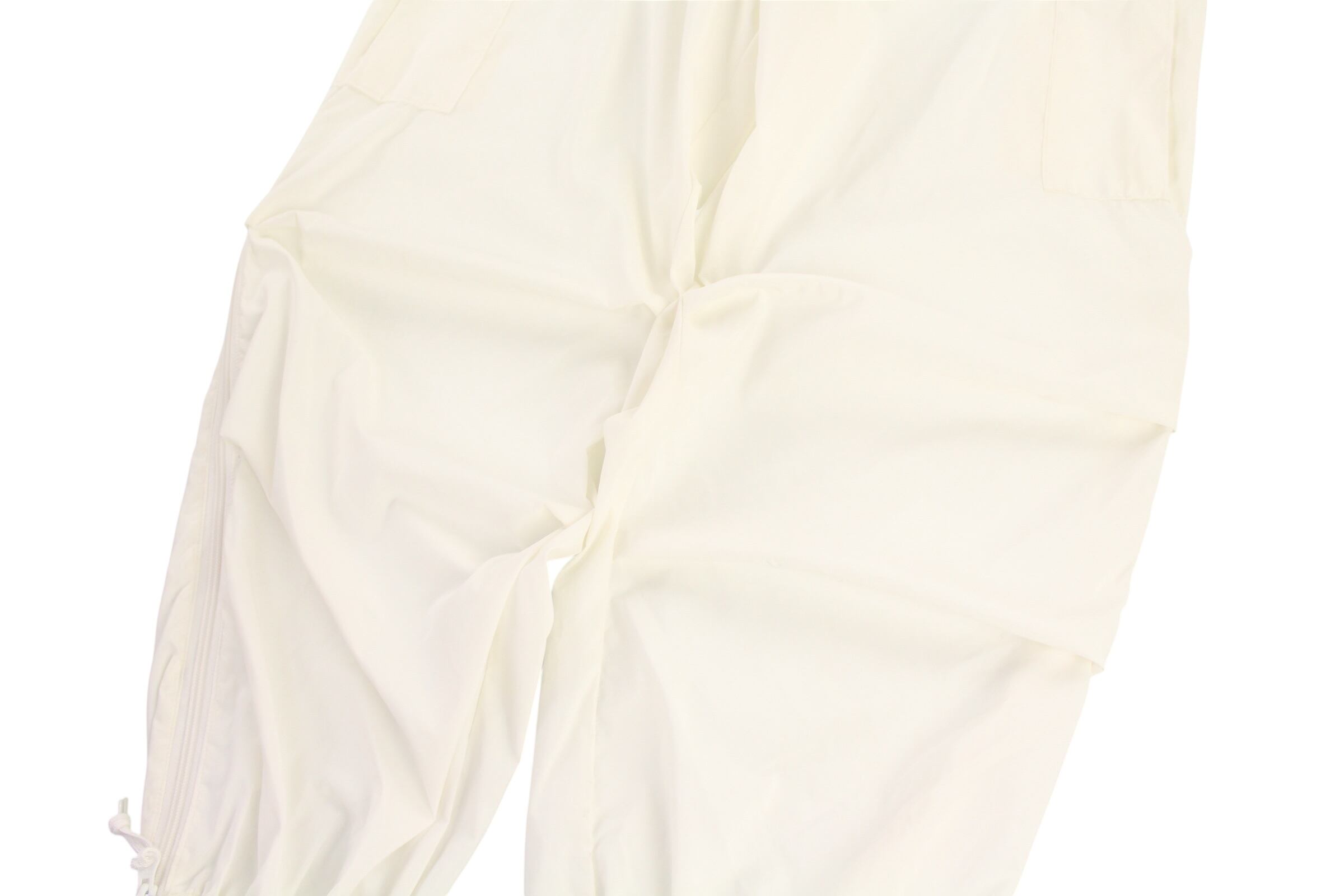 降雪地でのカモフラージュとしてパンツの上に履くよう設計されたデザインで、両ポケット貫通型のサイドジップは膝程まで大きく開く仕様。