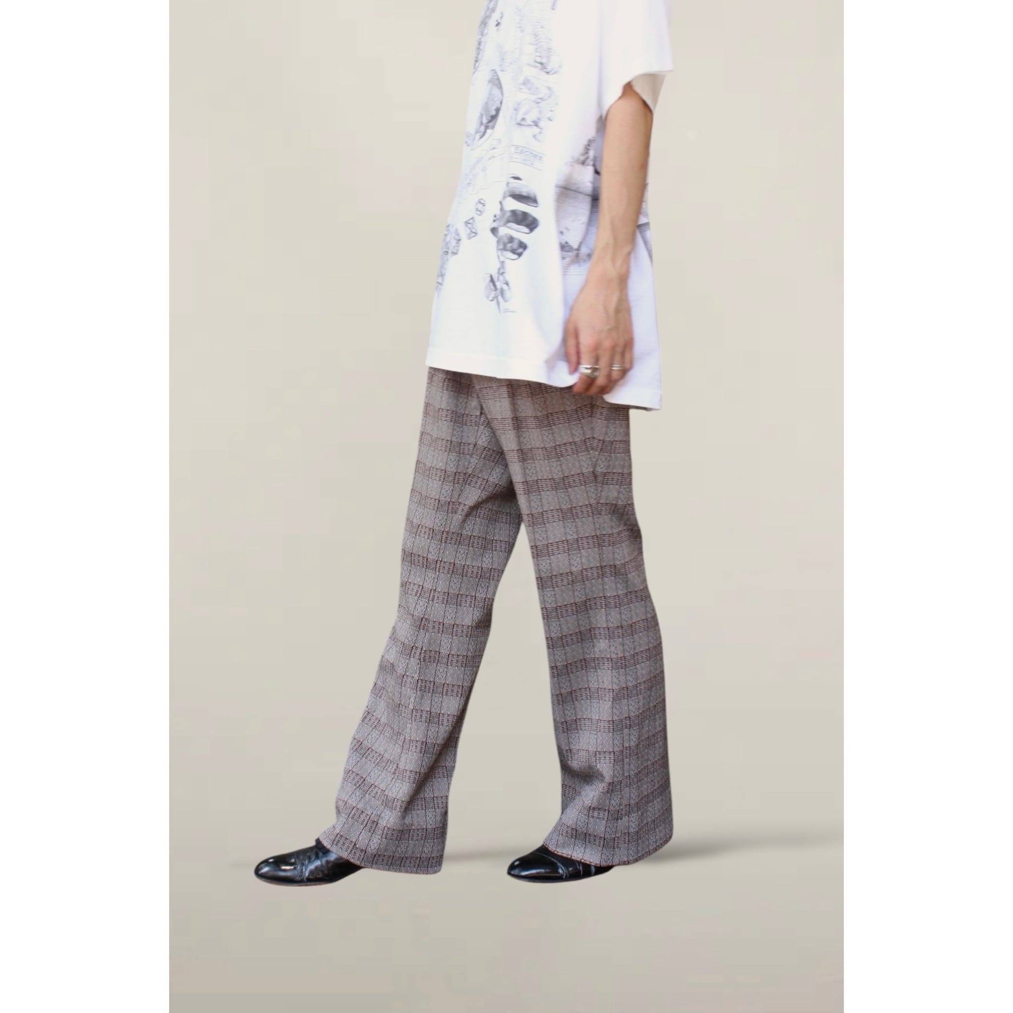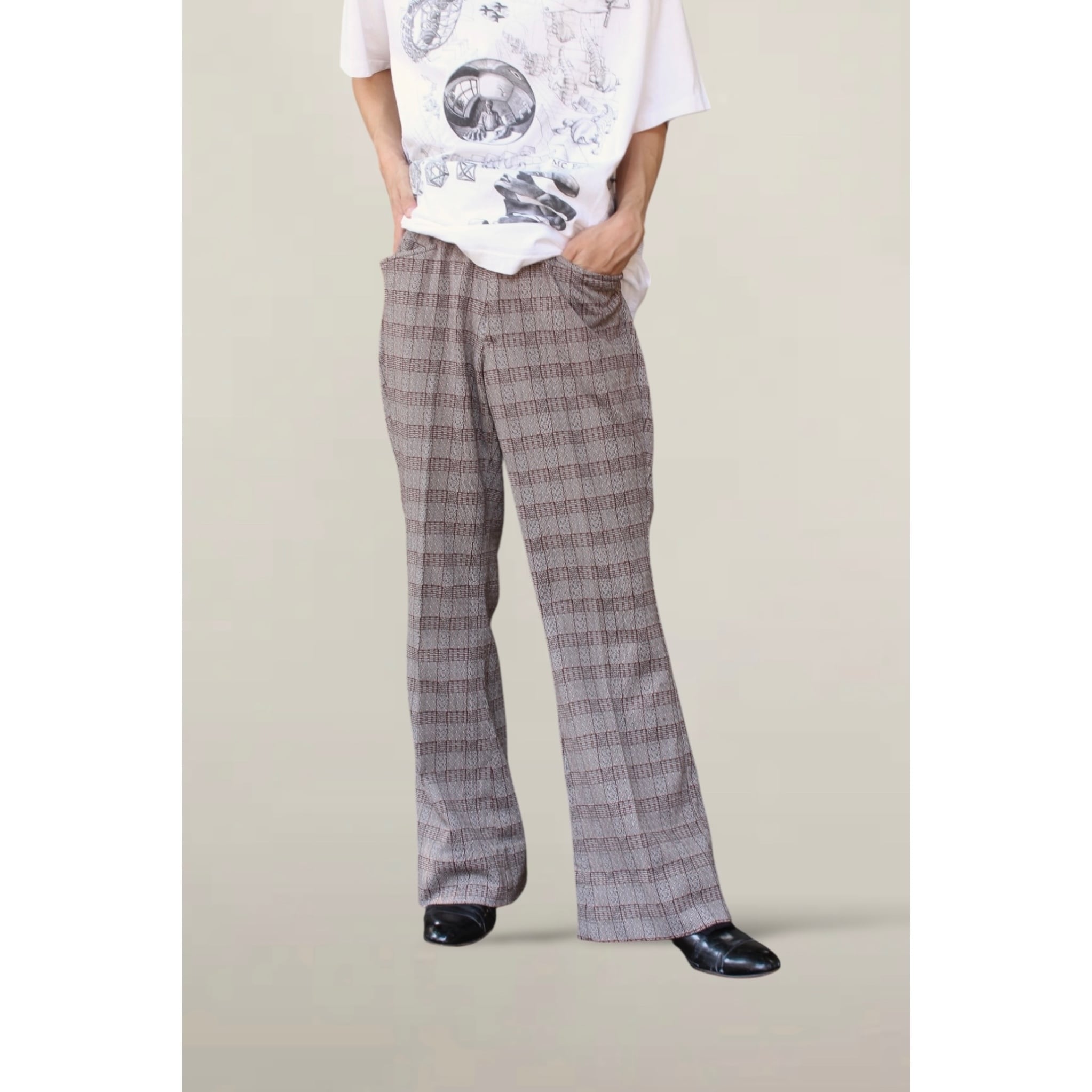 【OTSU】1980's vintage check pattern flare pants -13320-