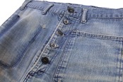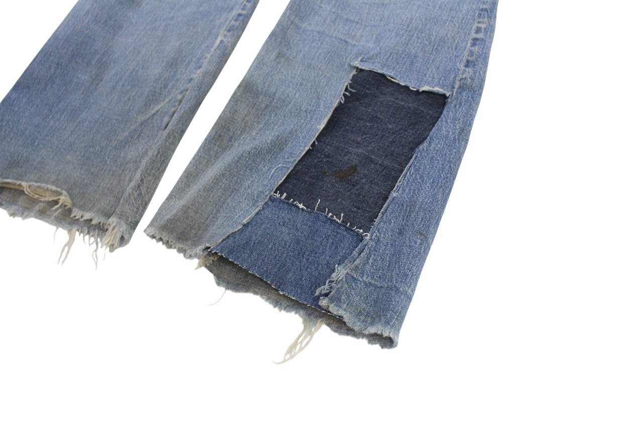 使い込まれた薄手のデニム地に、リアルなフェードとダメージ、そして当時の使用感が色濃く残る一本!