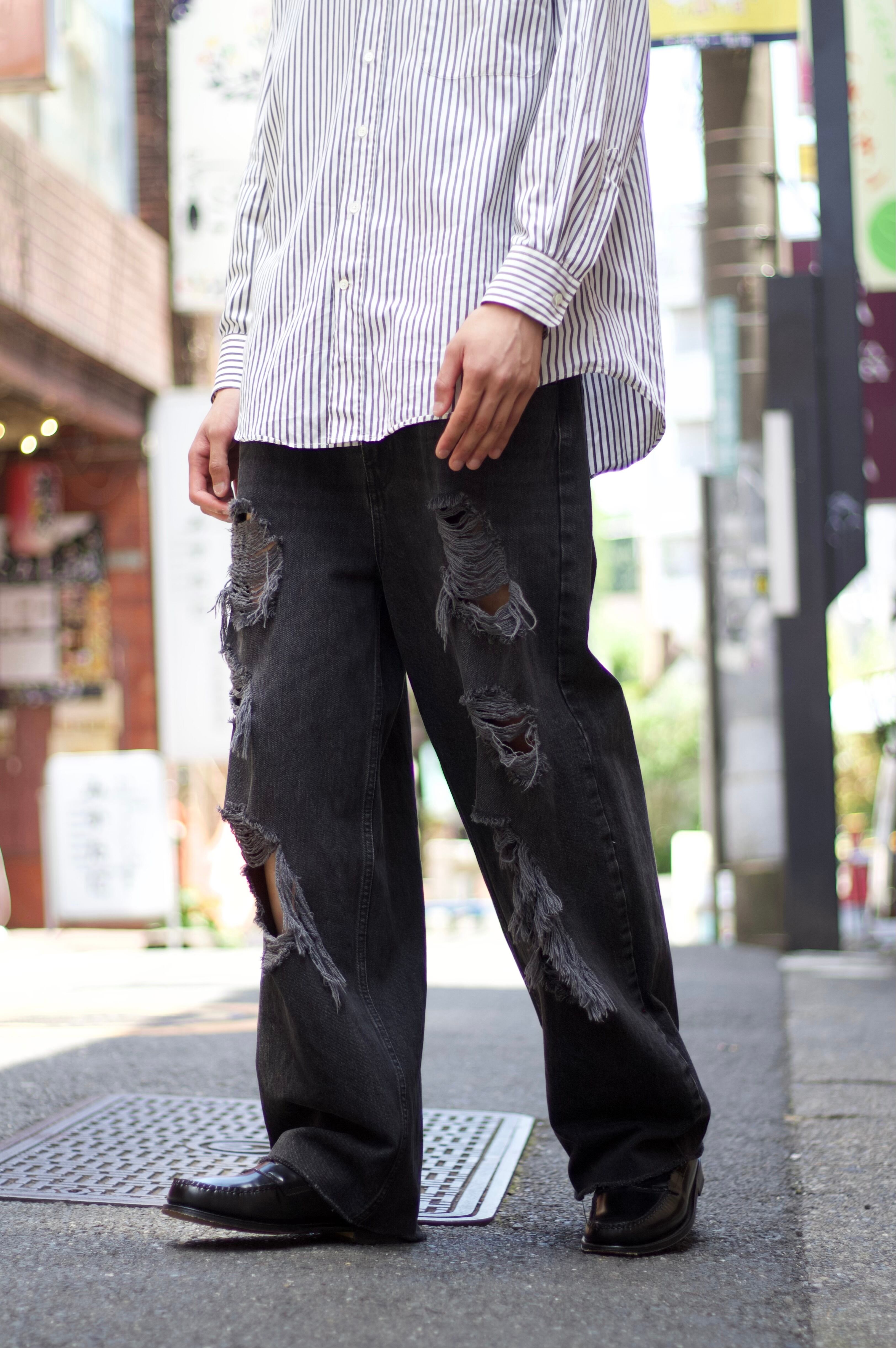 US発のカルチャーブランド、URBAN OUTFITTERSのオリジナルライン「BDG」からリリースされたクラッシュデザインのバギーデニムパンツ。