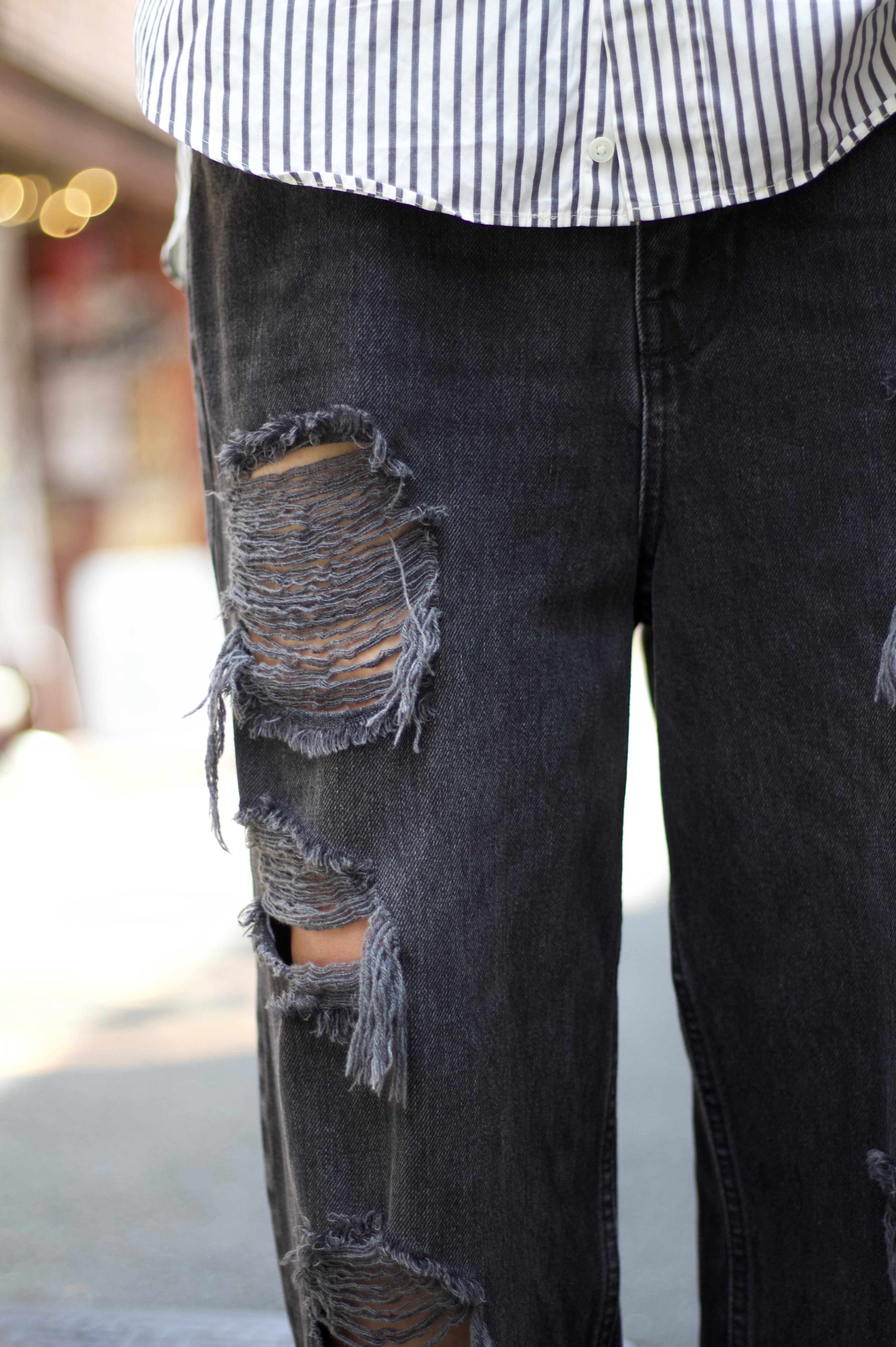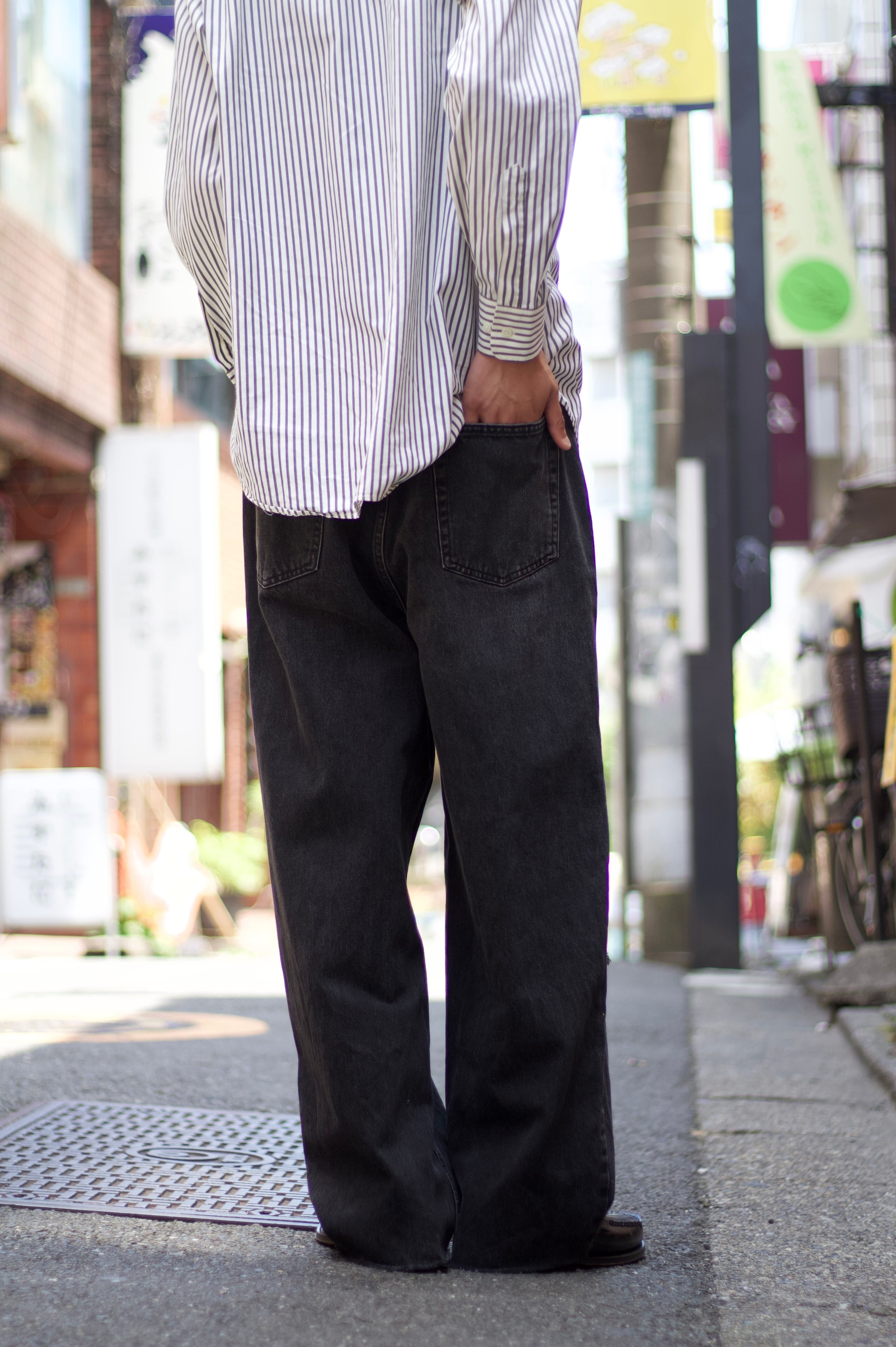 ブラックデニムにフェード加工を施し、長年穿き込んだようなリアルな色落ちと質感が魅力の一本。