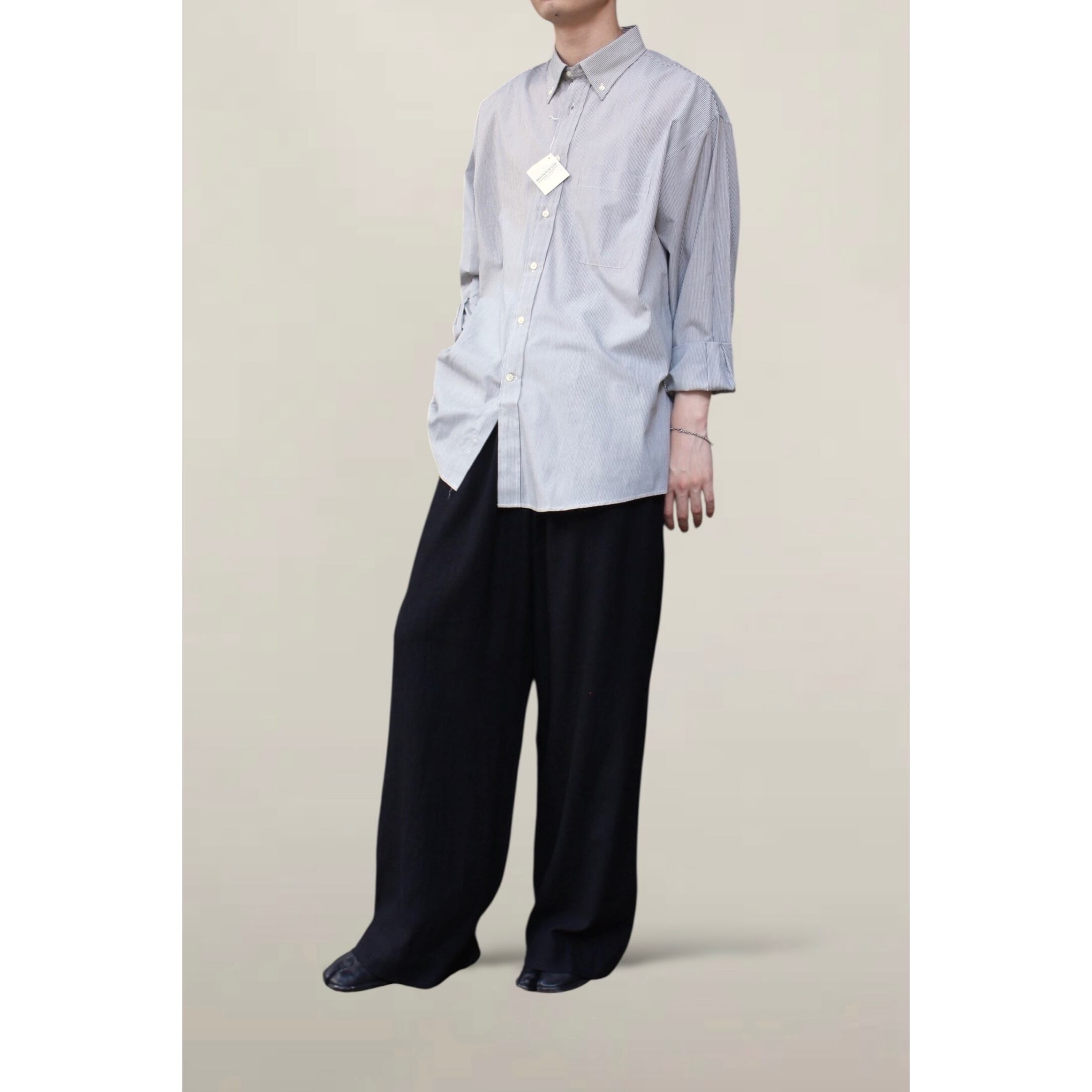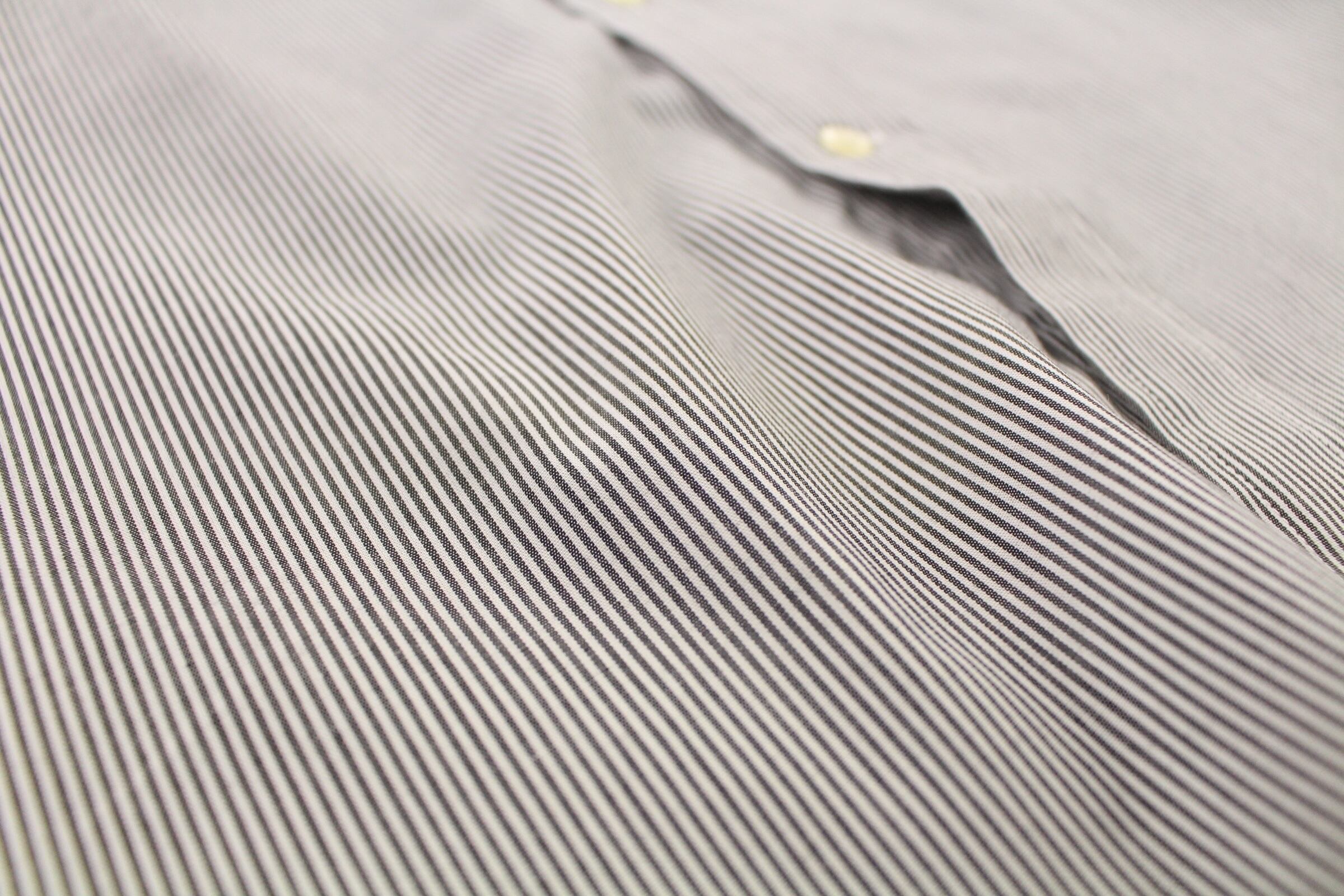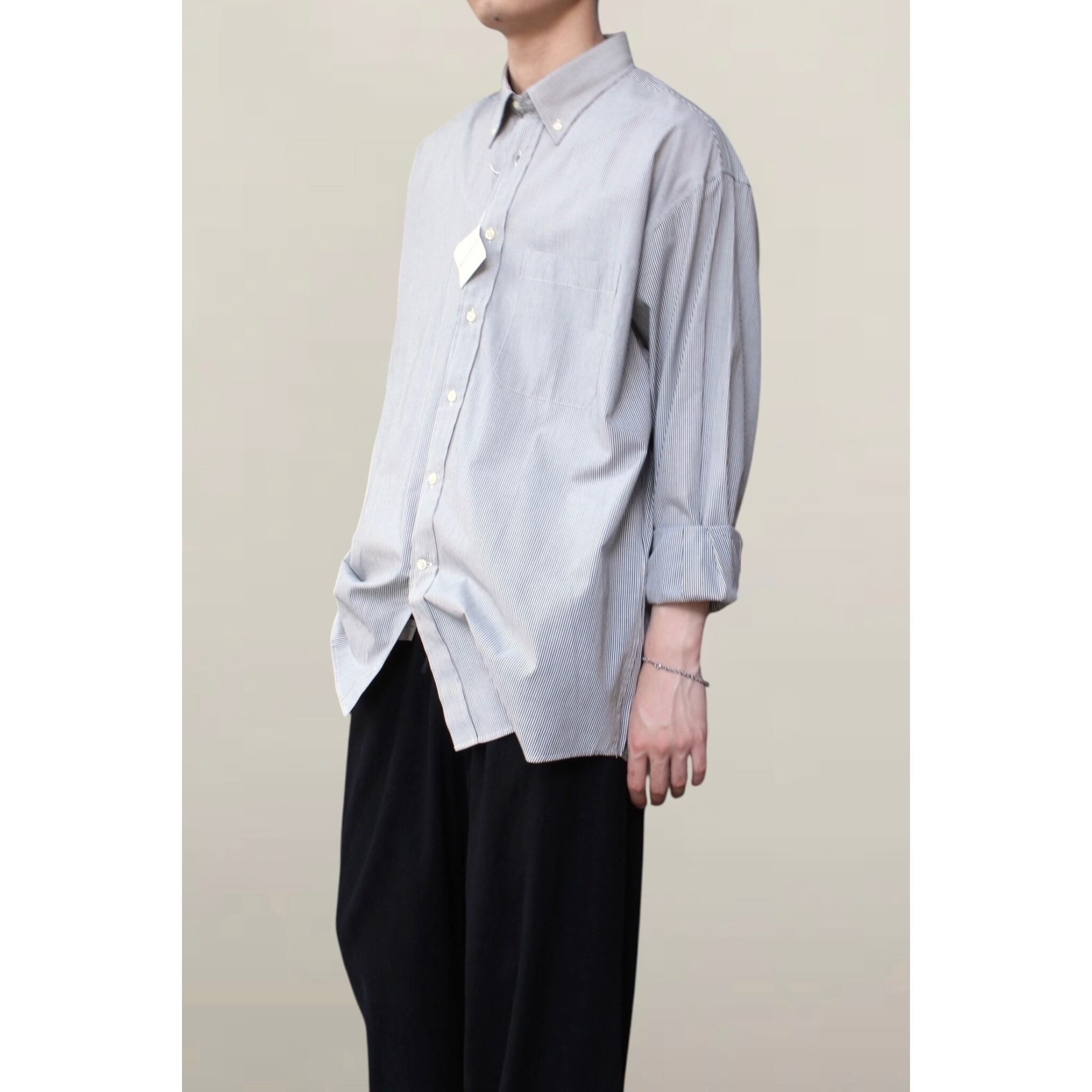 加えてストライプの細いピッチ。上品ながらボタンダウンでルーズなシルエットバランスがドレスすぎない丁度良い塩梅。素晴らしいです。。