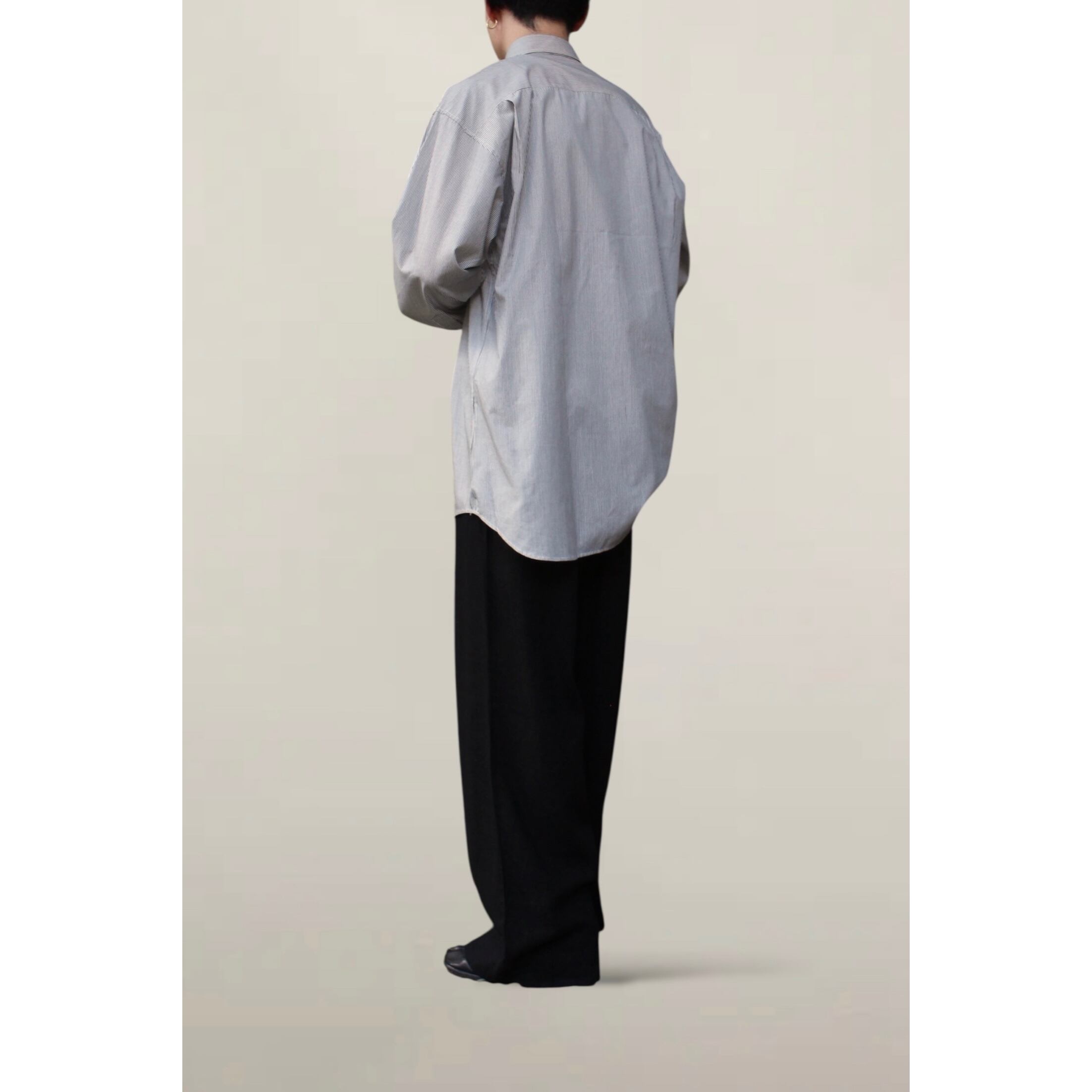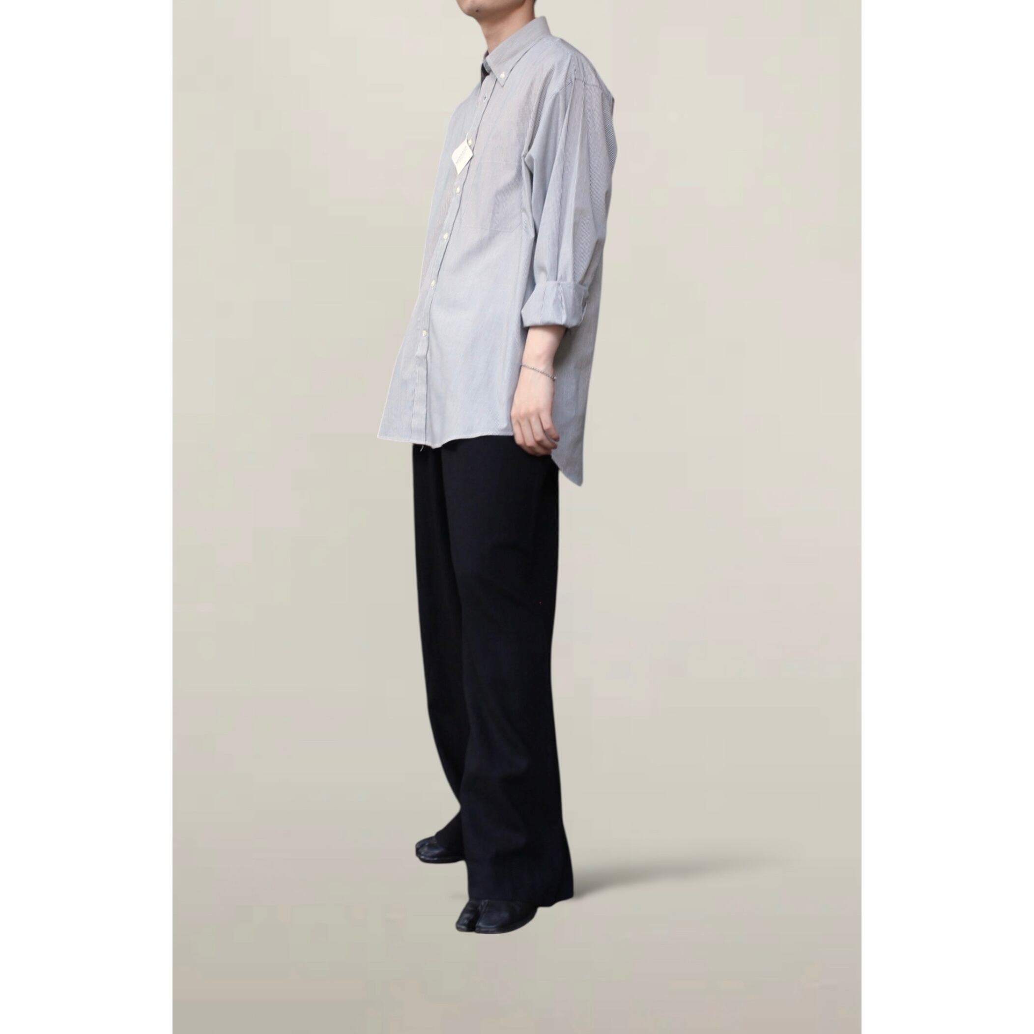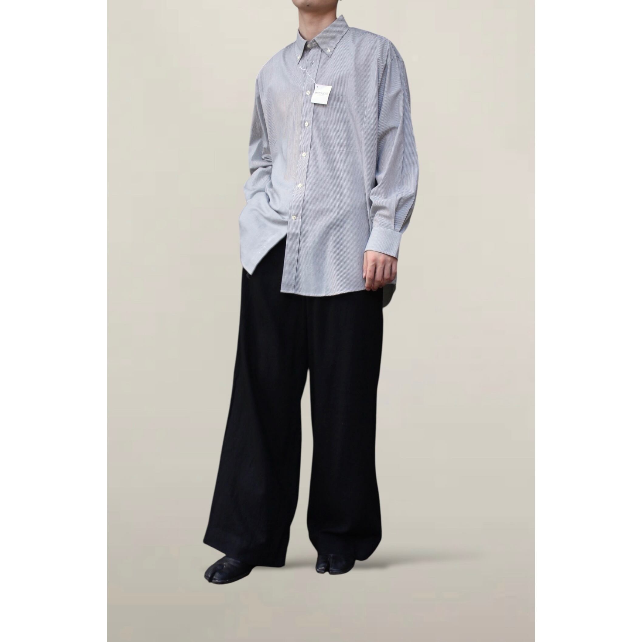 加えてストライプの細いピッチ。上品ながらボタンダウンでルーズなシルエットバランスがドレスすぎない丁度良い塩梅。素晴らしいです。。