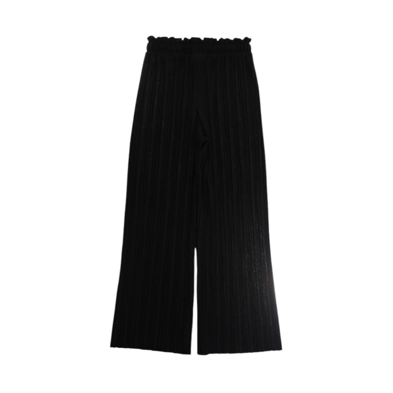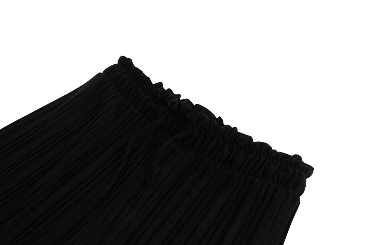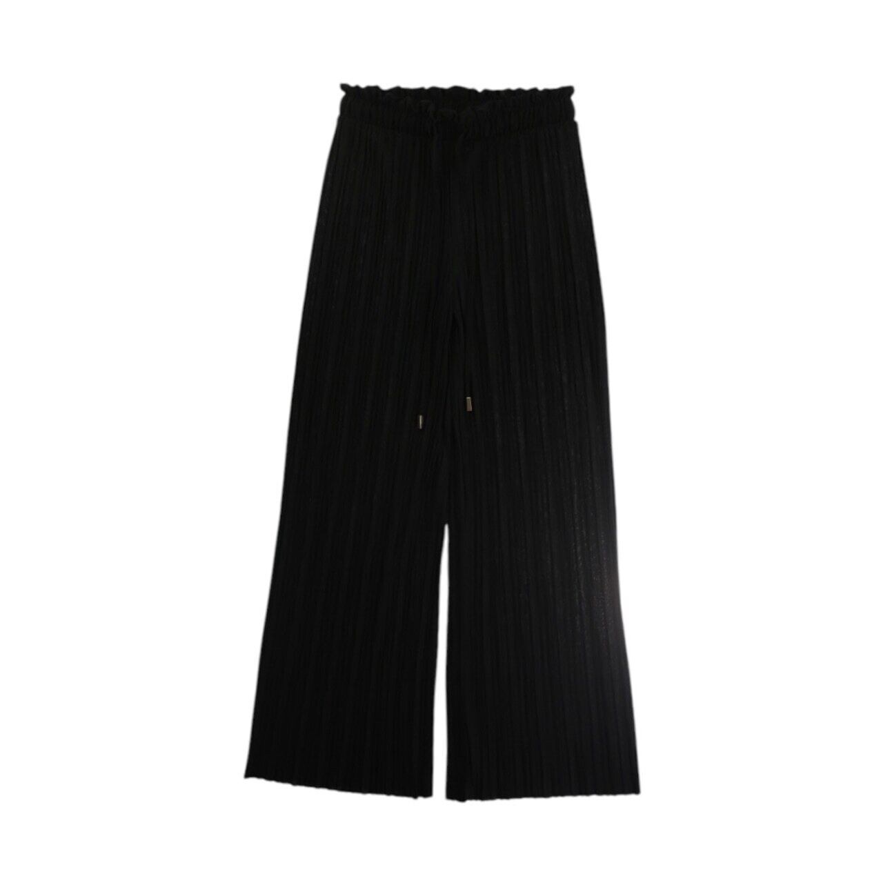 "Black" pleats wide easy pants with drawcord【FF-11112】