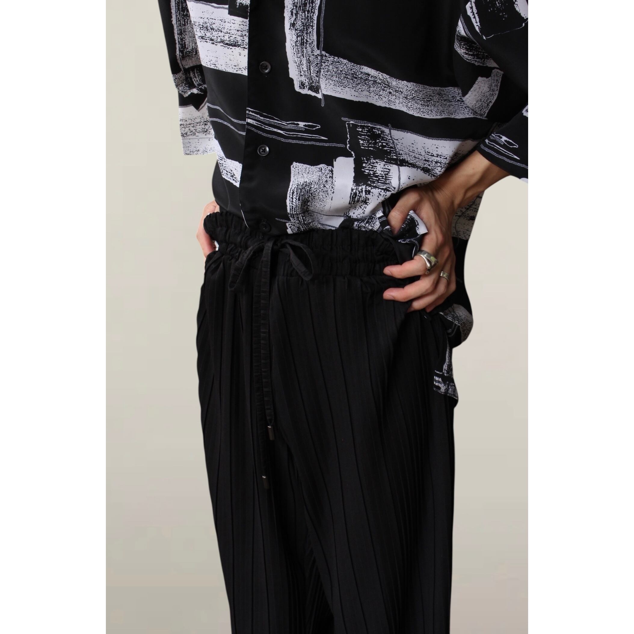 ウエストはゴムで男女問わず凡ゆる方にマッチするアイテム。生地感も薄手なので楽に履けるイージーパンツ。