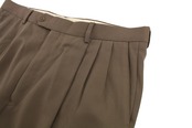 ビンテージ界隈だと人気が高いウール生地のギャバジン織。高品質なウール生地でしっとりとした質感と程よくツヤを感じられるスラックス。