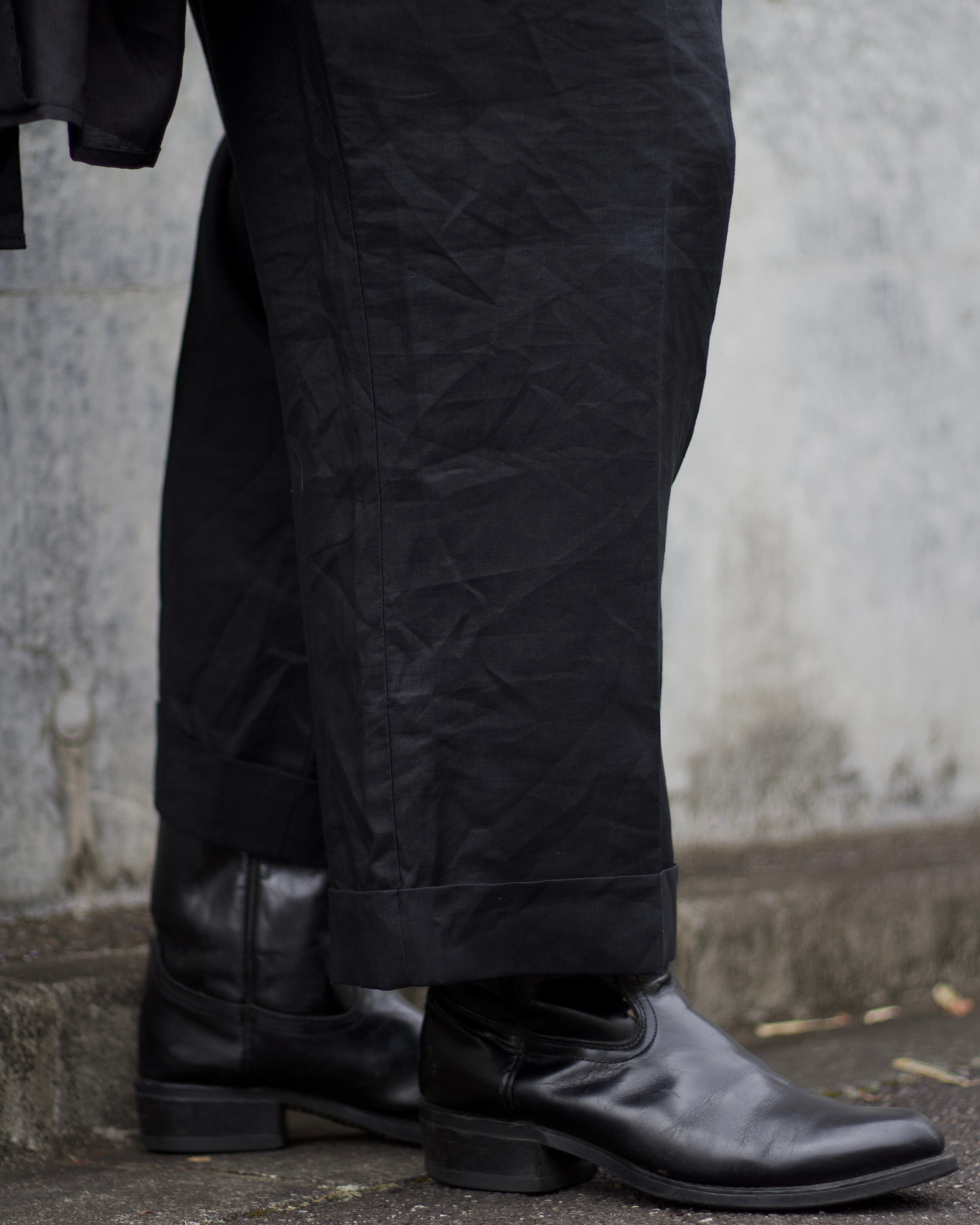 裾幅 30cm で太さもありながらウエスト紐付き。