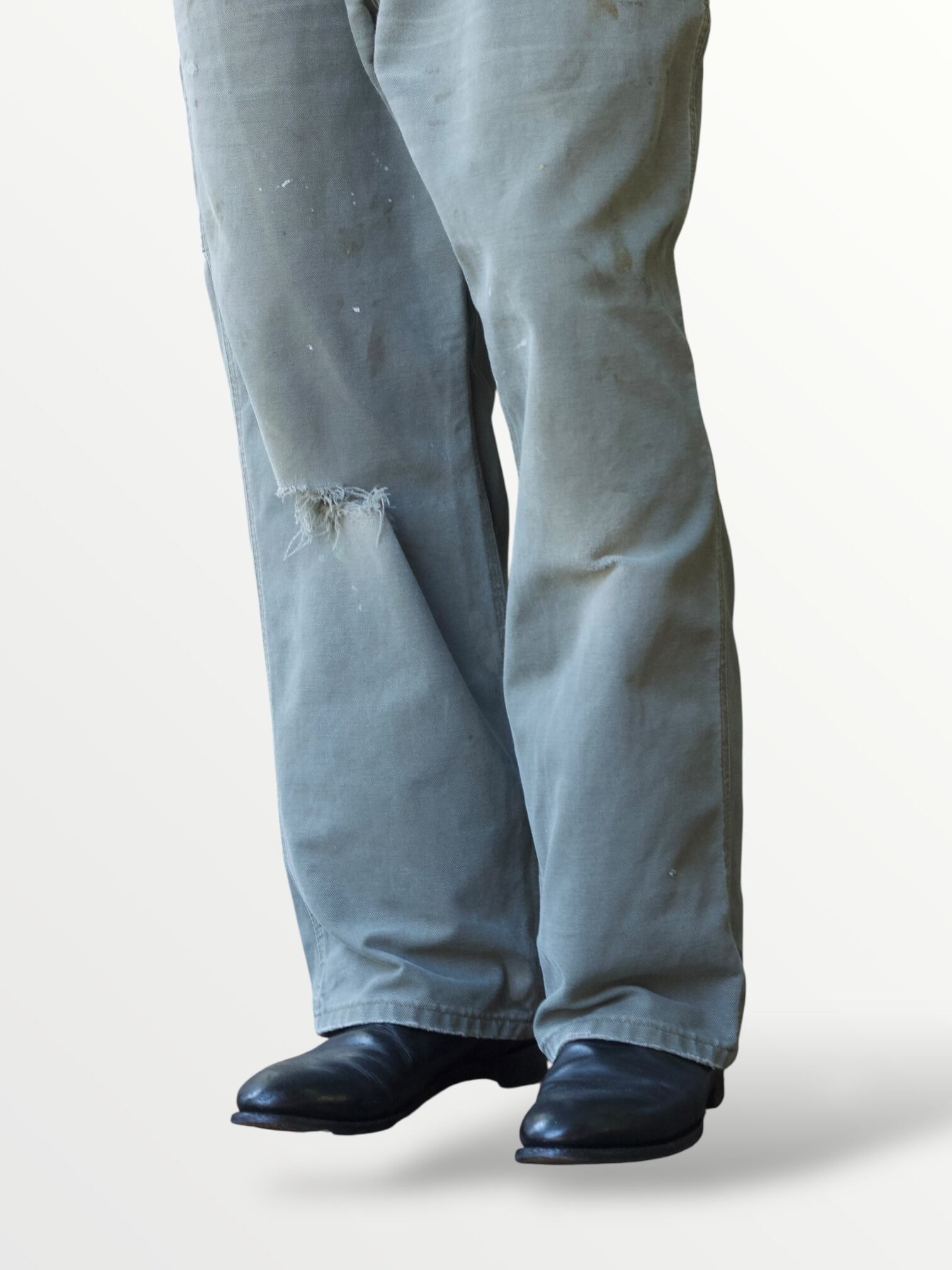 今回の1本は経年変化によってフェードしたカーキダックの色味、リアルワークウェアならではなダメージ具合が最高にクールな雰囲気です☺︎