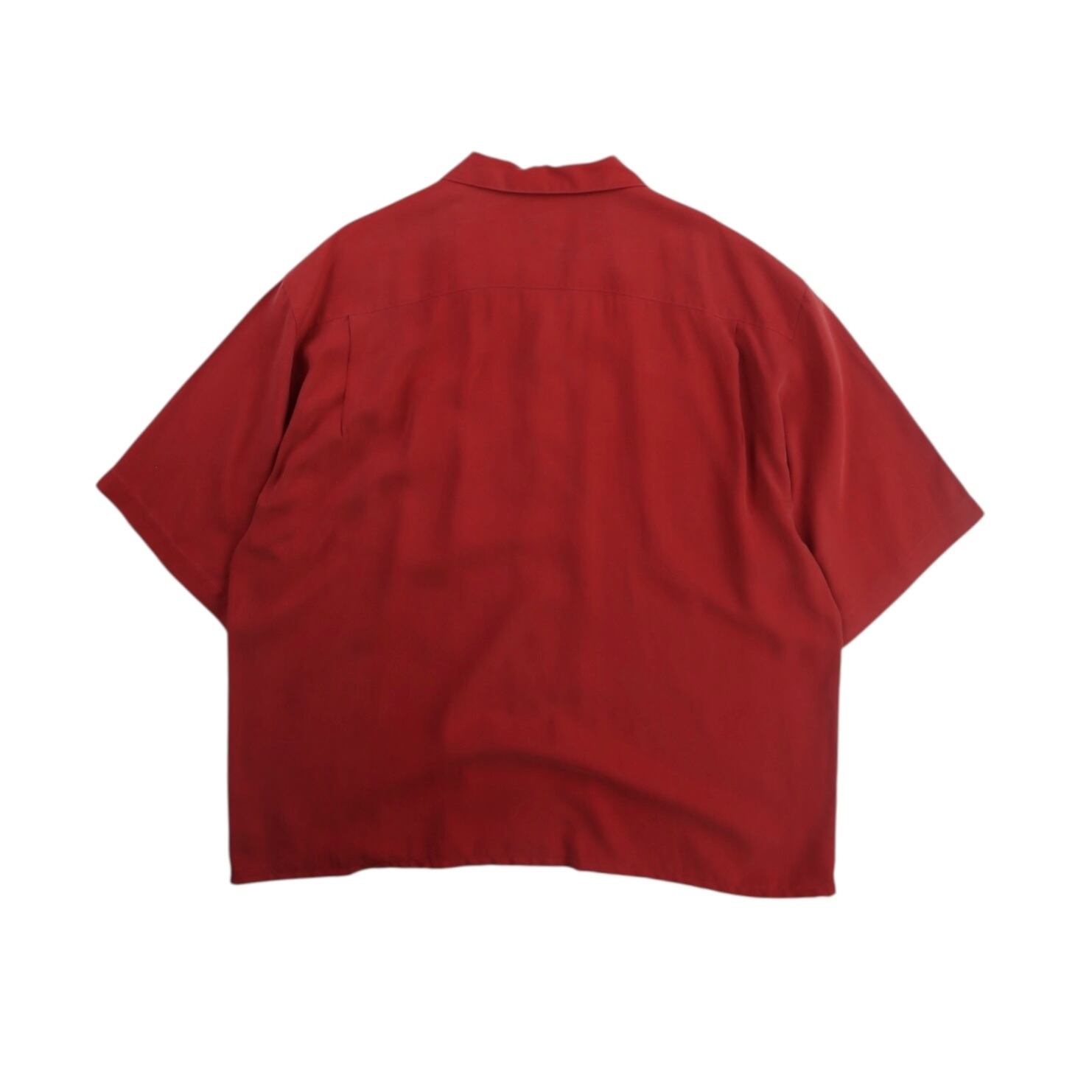 華やかな赤色のシルクオープンカラーシャツが入荷しました。
