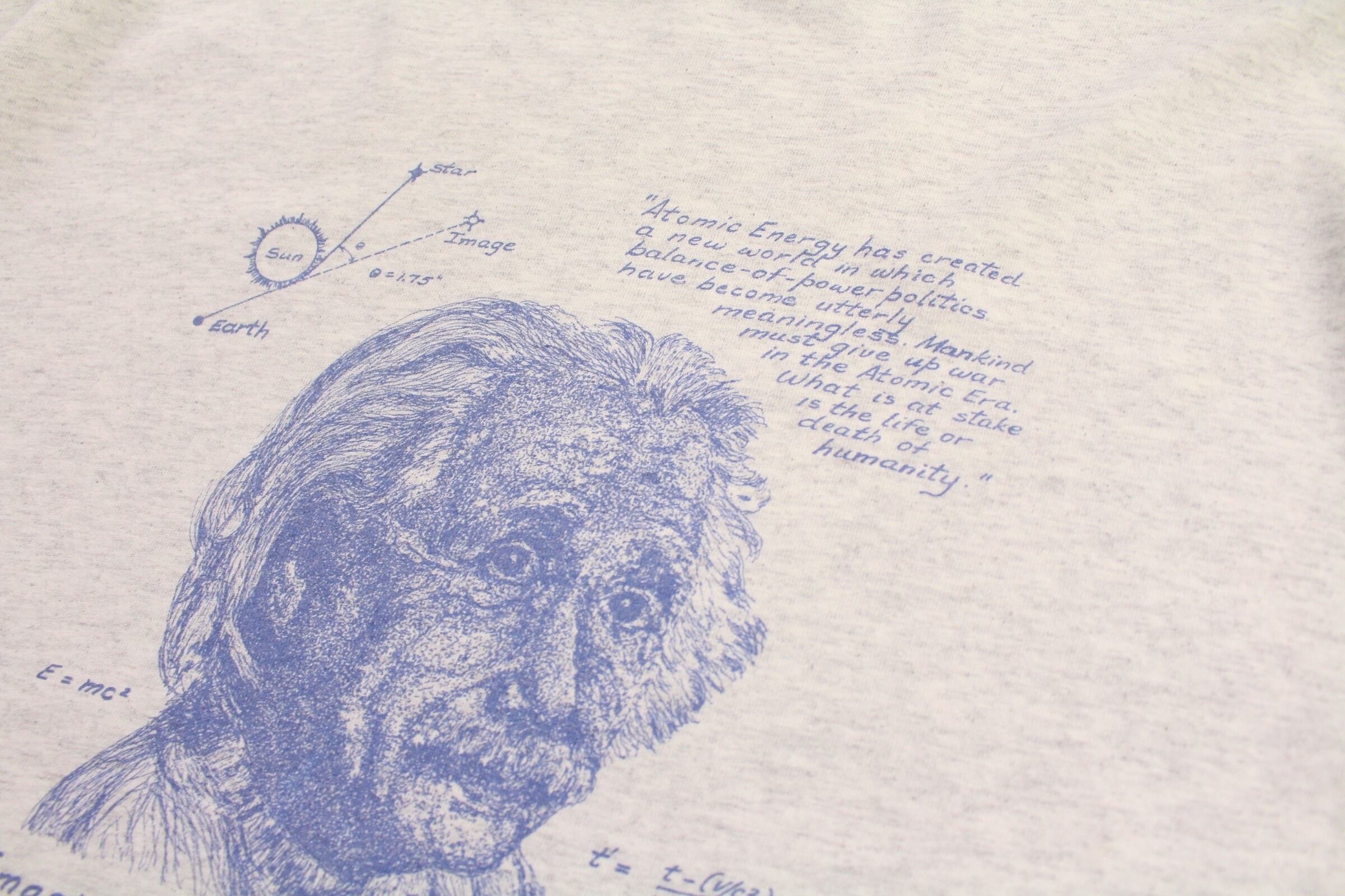 フロントにはアインシュタインの肖像画と、彼の功績を称えるかのような手書き風のデザインがプリントされています。